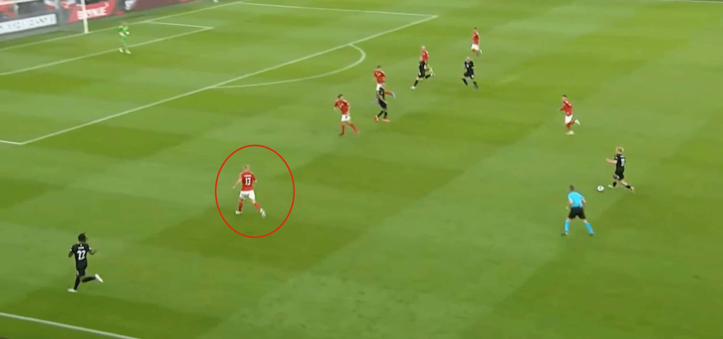 Also, all the Red Bull teams are built and drilled based on high-intensity defensive plays where the players are also expected to show high intensity. Kristiansen embodies that and is very intense in his defensive actions and always looks to press the opponent very high and in an explosive manner. More of his defensive role will be discussed further in the analysis.