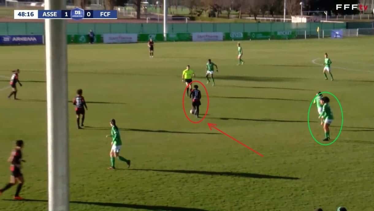 Whilst she was closed down quickly by Chloé Tapia here, the fact that she can drop back this far will have piqued the interest of many of those linked with signing her, most notably Chelsea, who will perhaps see this as evidence that she could be used in a wing-back role if they were to retain it next season.