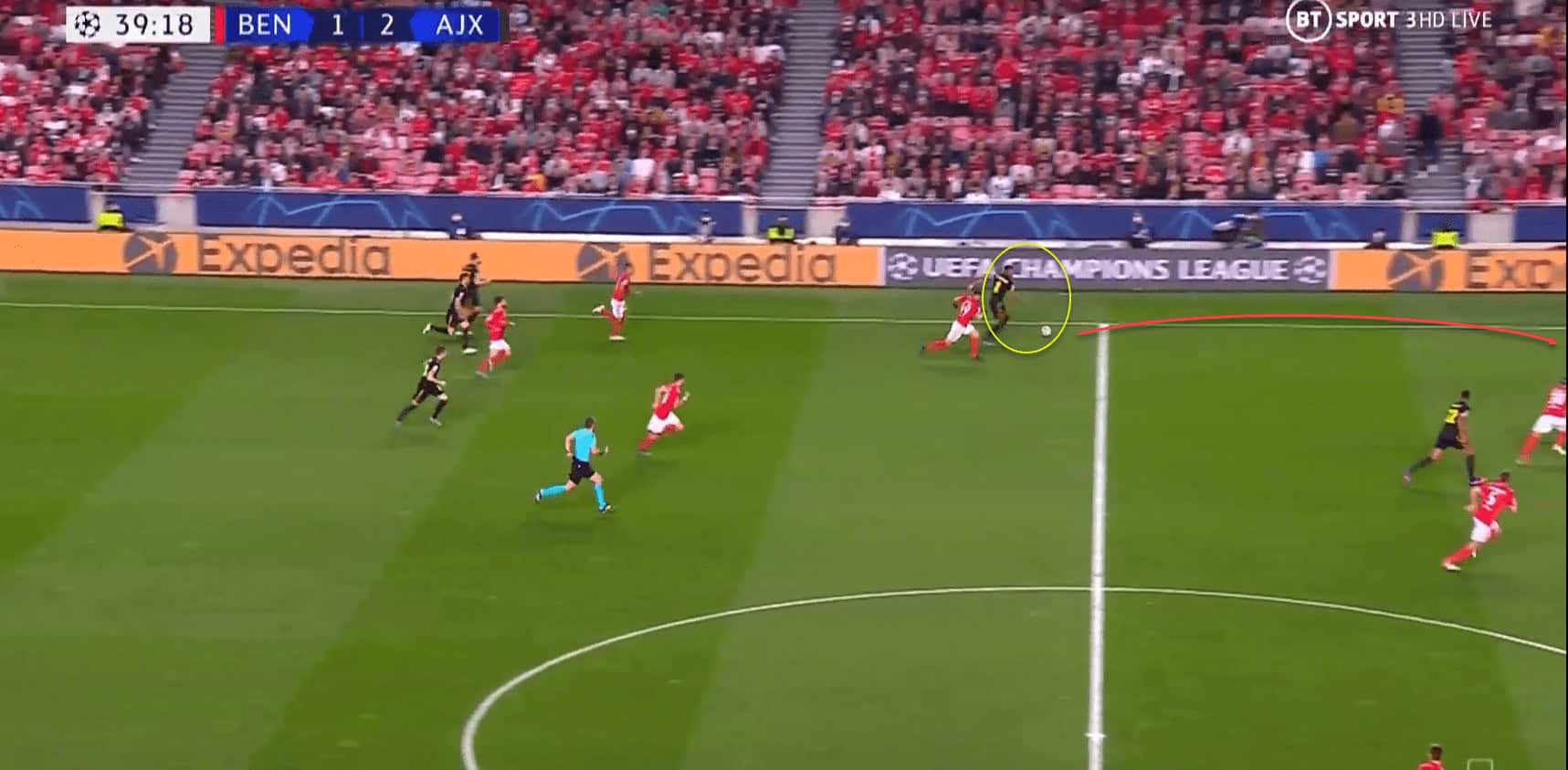 Gravenberch then carries the ball all the way to the edge of the Benfica box before releasing a teammate.