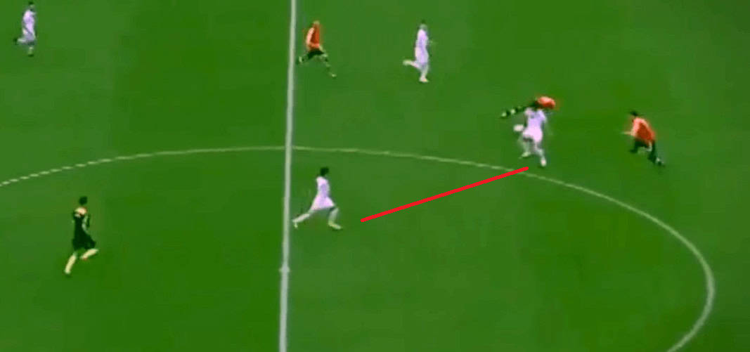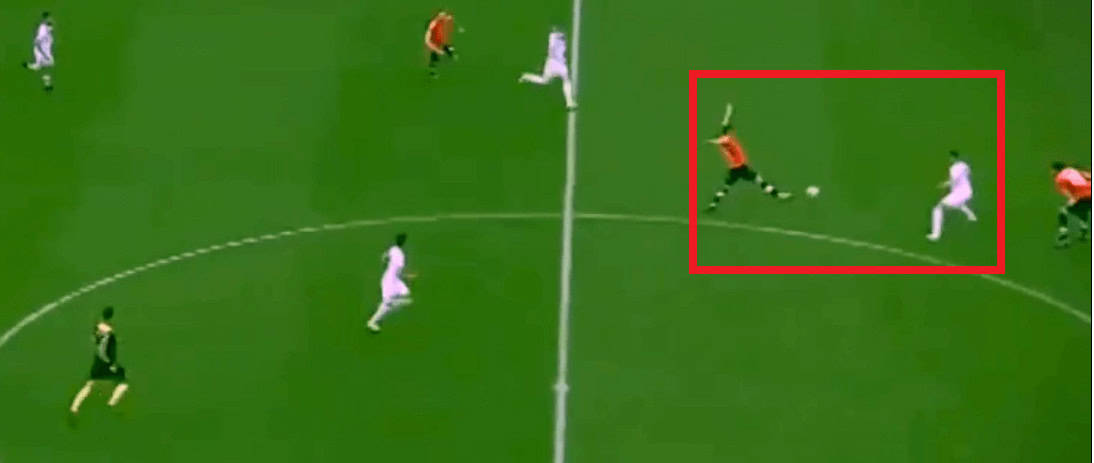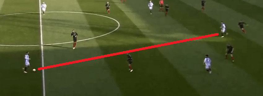 In the picture below we see Lammers, in Blue, with the ball on his favoured left foot in front of the opponent’s back line.