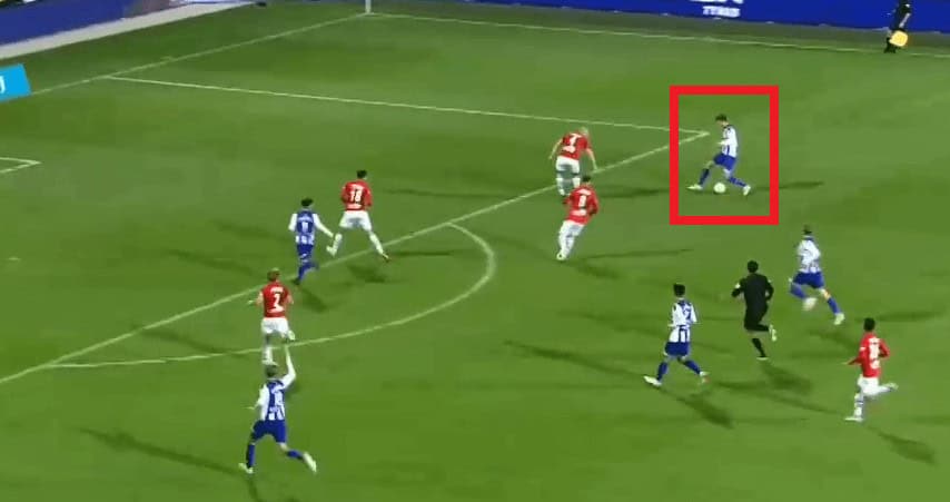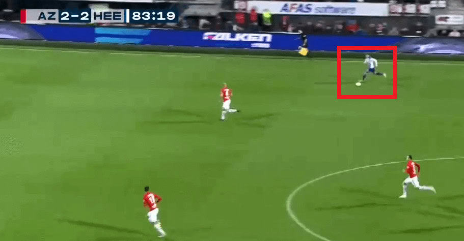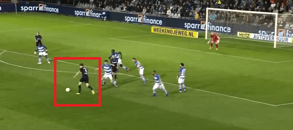 Once the defender is on their heels, Lammers drags the ball on to his right foot and explodes into the box.