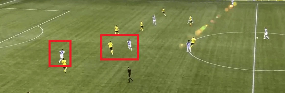 The result is the ball is lost in the middle third and Heerenveen is forced to defend a counter attack.