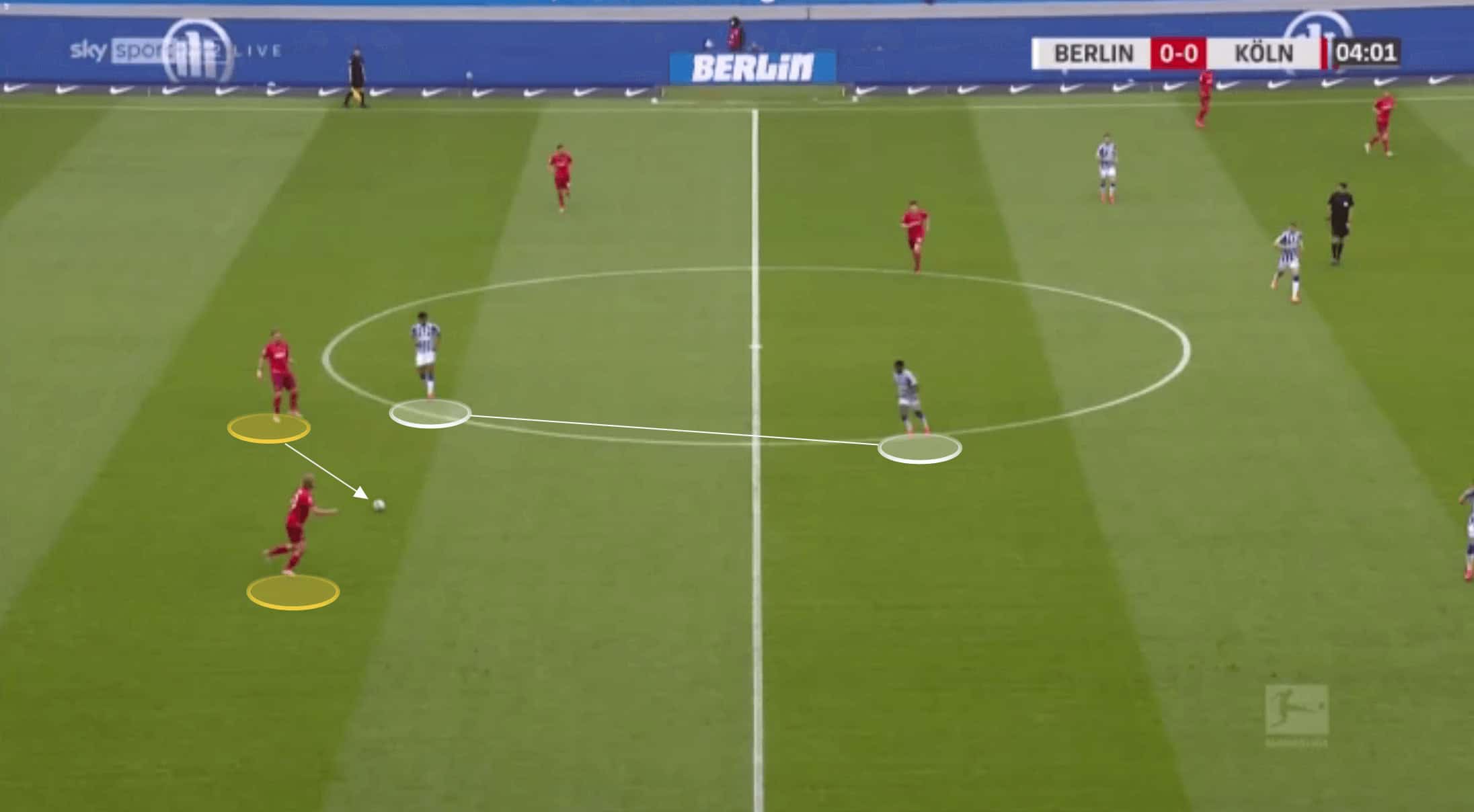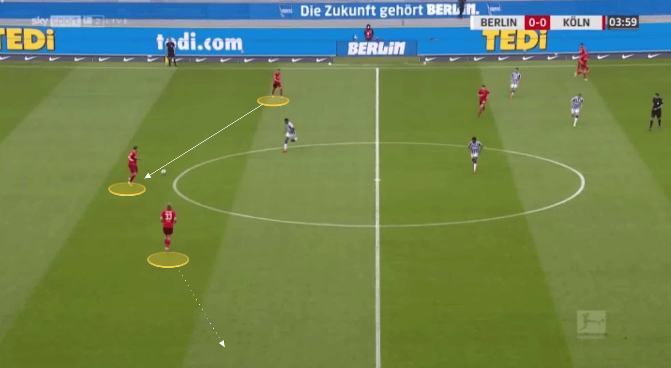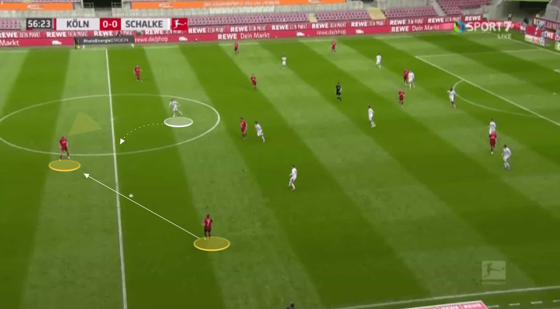 Even in a back four, however, Koln would keep their centre-backs deep and compact when in possession.