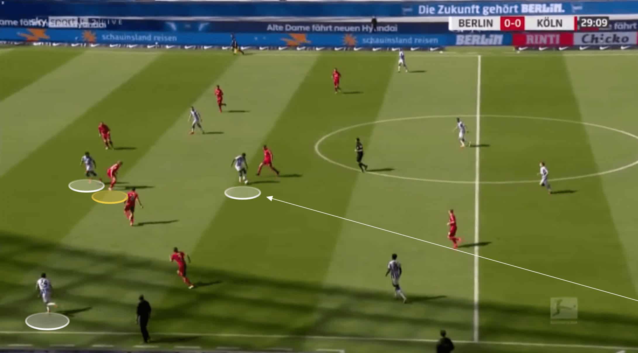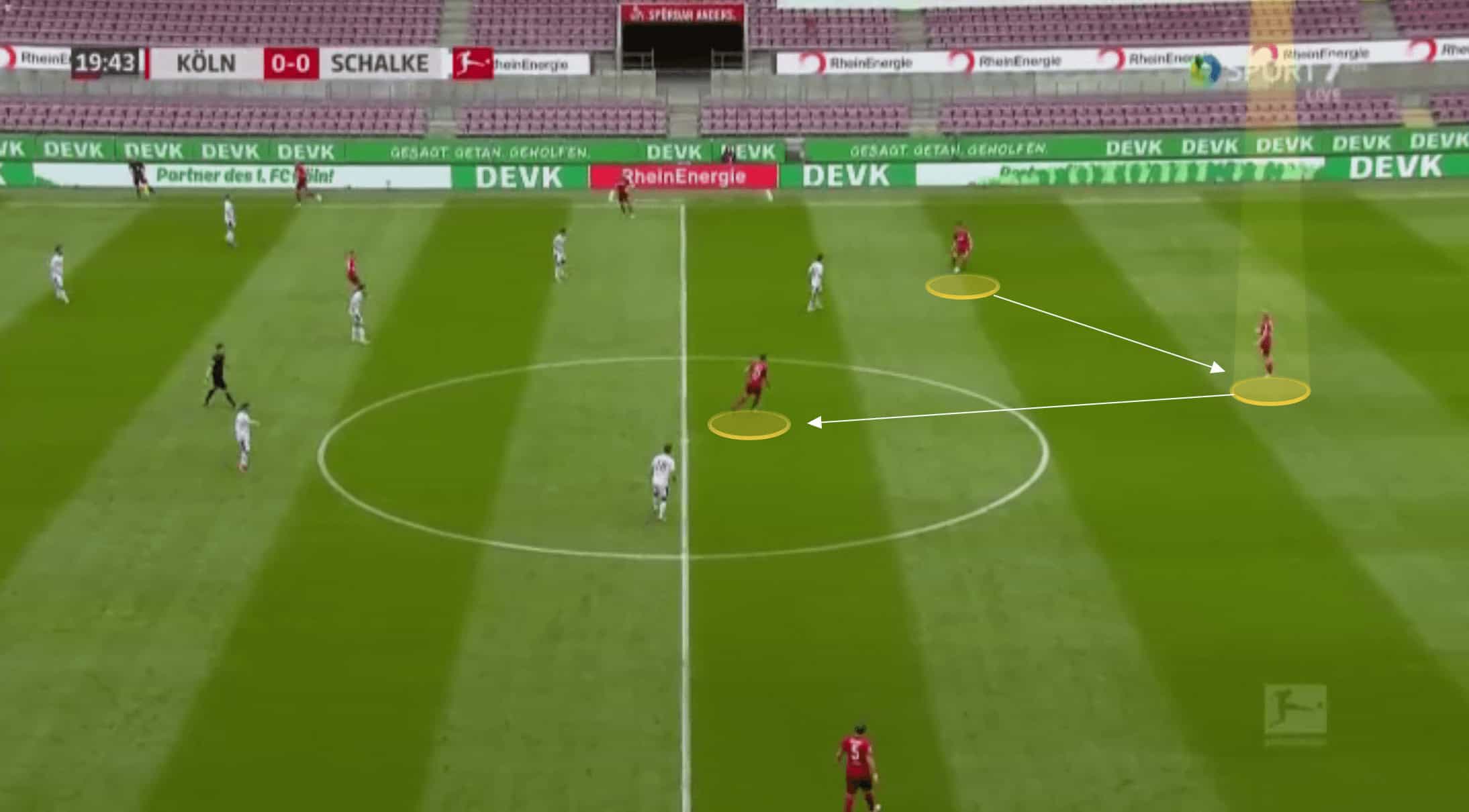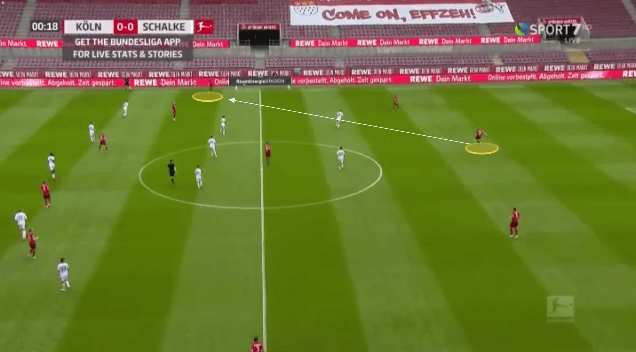 Even in a back four, however, Koln would keep their centre-backs deep and compact when in possession.
