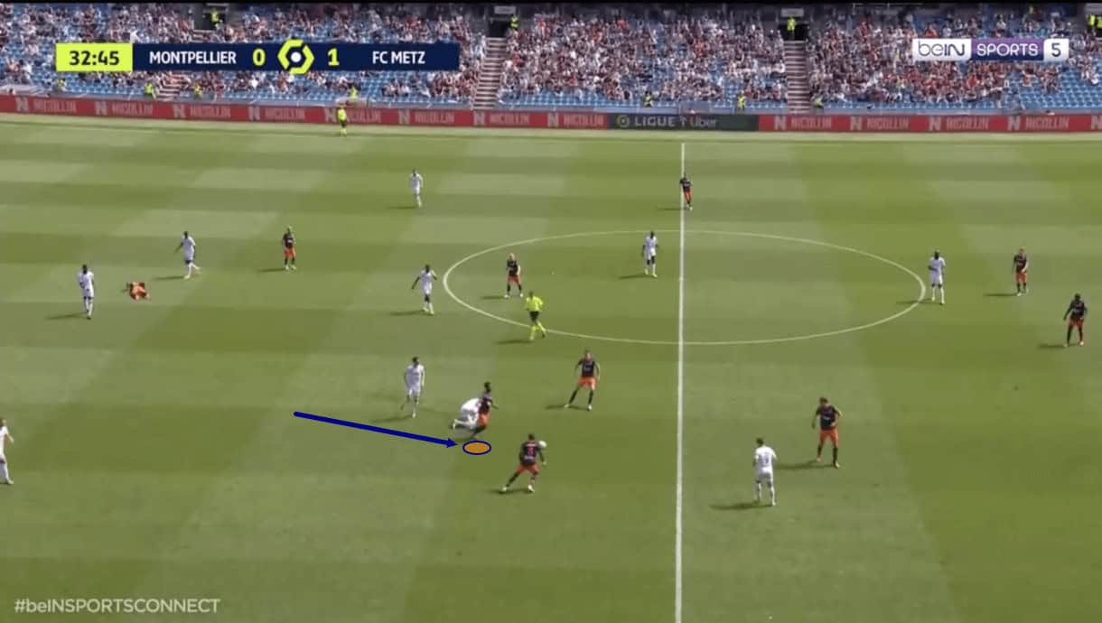 However, his duty with Montpellier is to track back and assist those positioned deeper than him to regain possession, and this is something he’s proven well able for as well as very willing to do.