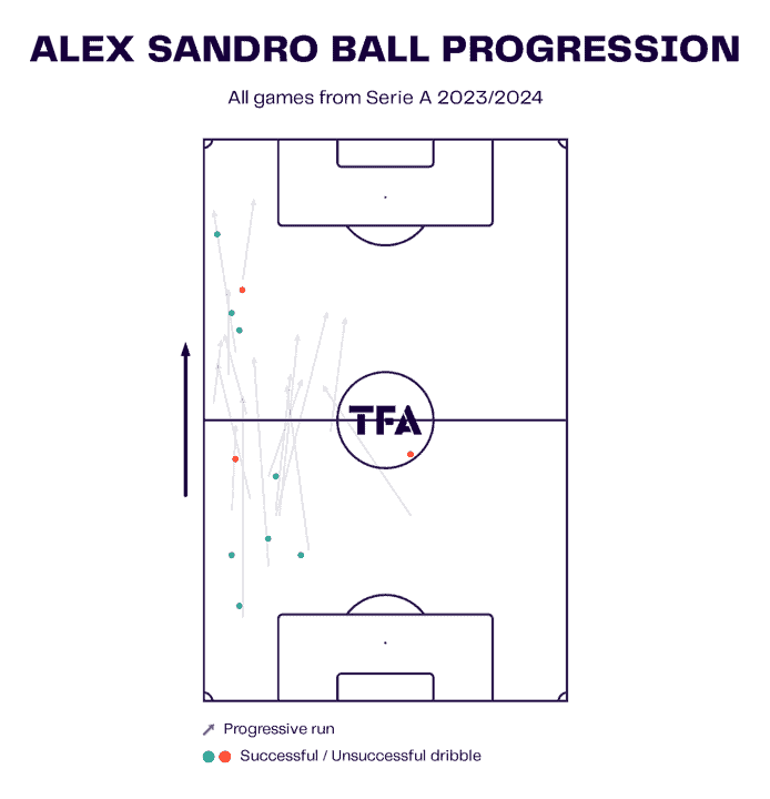 His 1.22 dribbles per 90 was one of the highest for central defenders in Italy’s top flight, and that was matched with an impressive success rate of 72.7%