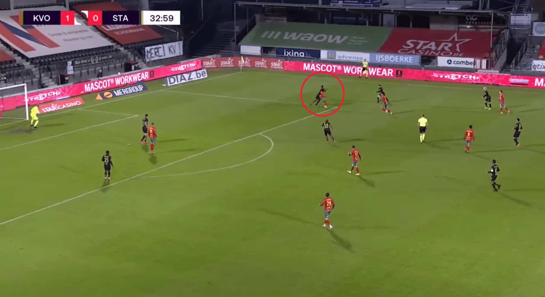 In Blessin’s setup at KV Oostende where he deploys the 3-5-2 formation, Sakala starts as one of the two strikers and mostly it would be on the right side of the pitch. But as a striker and is a forward, Sakala is not restricted to the left side and often finds himself in the right flank to support teammates or receive the ball.