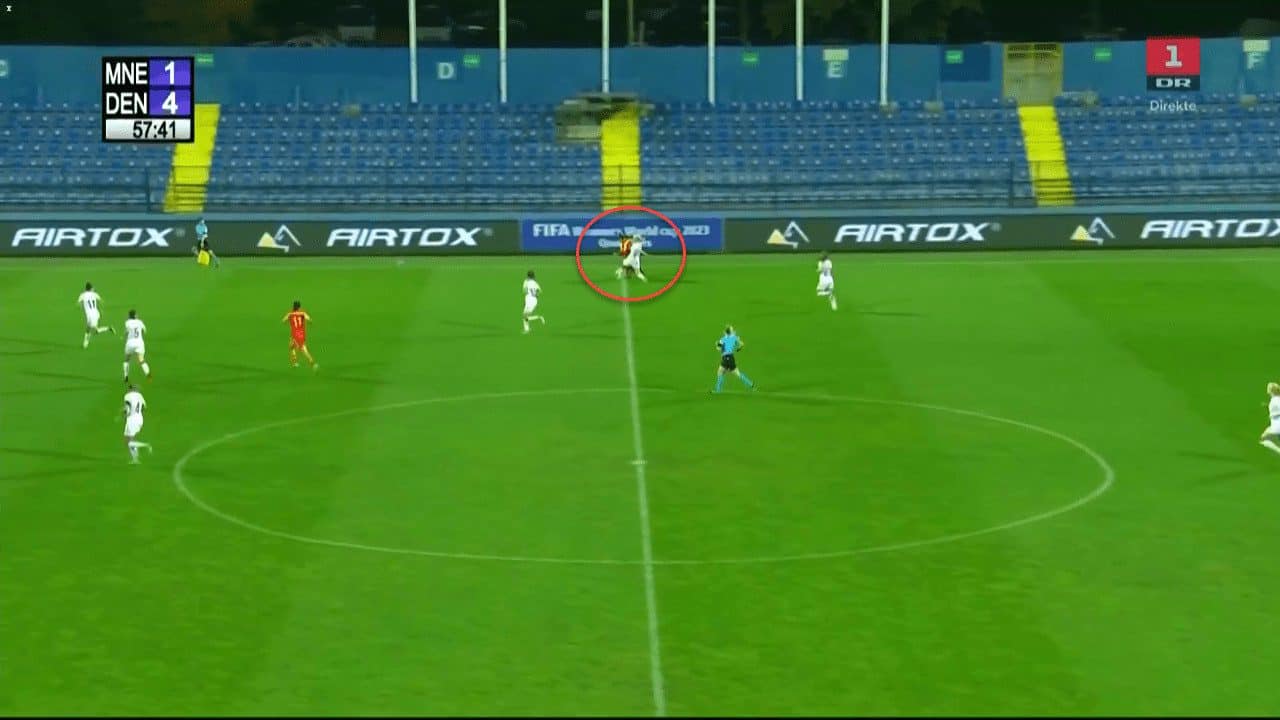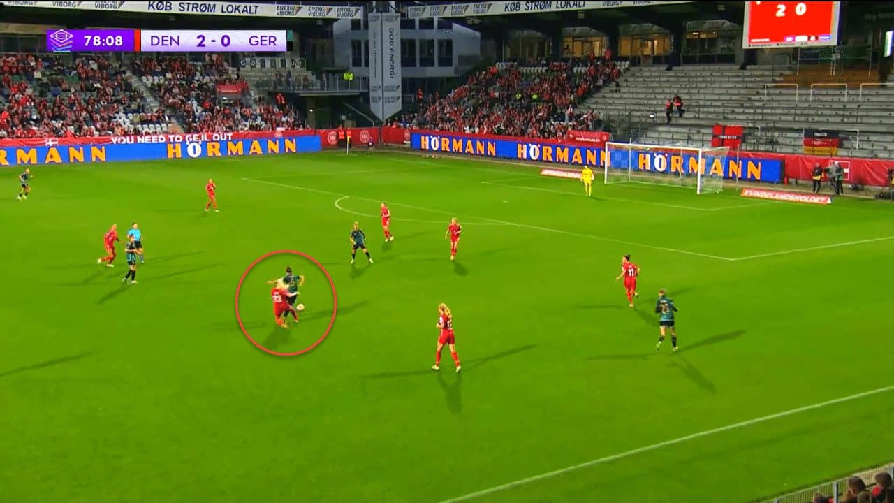 Nevertheless, she was often used as a wing-back with Denmark in their 3-4-3 or even as a winger in their 4-4-2, as Andrée Jeglertz prefers to use her more in advanced positions, exploiting her attacking abilities in a more frequent and consistent way.