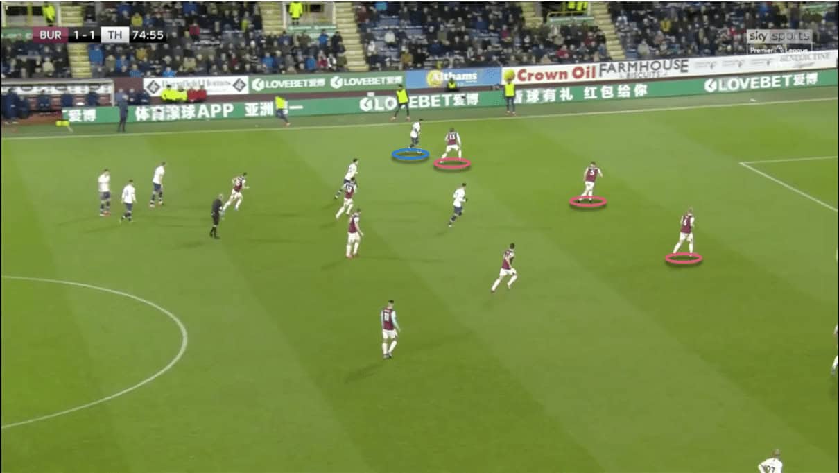 Inverted wingers allow for an easier time to create a numerical advantage over the opposition’s fullback. When Bergwijn, a right-footed winger playing on the left, is in front of his teammate, a left-footed left-back (usually either Ben Davies or Danny Rose), he has the ability to dribble the ball forward, and inwards, towards the opposition’s box. The fullback defending him will be forced to defend with his weaker foot. Once Bergwijn cuts inside, Davies or Rose then have the left flank with space to run into, thus creating a 2vs1 situation with the opposition’s right-back, who again, is being forced to defend on his weak foot.