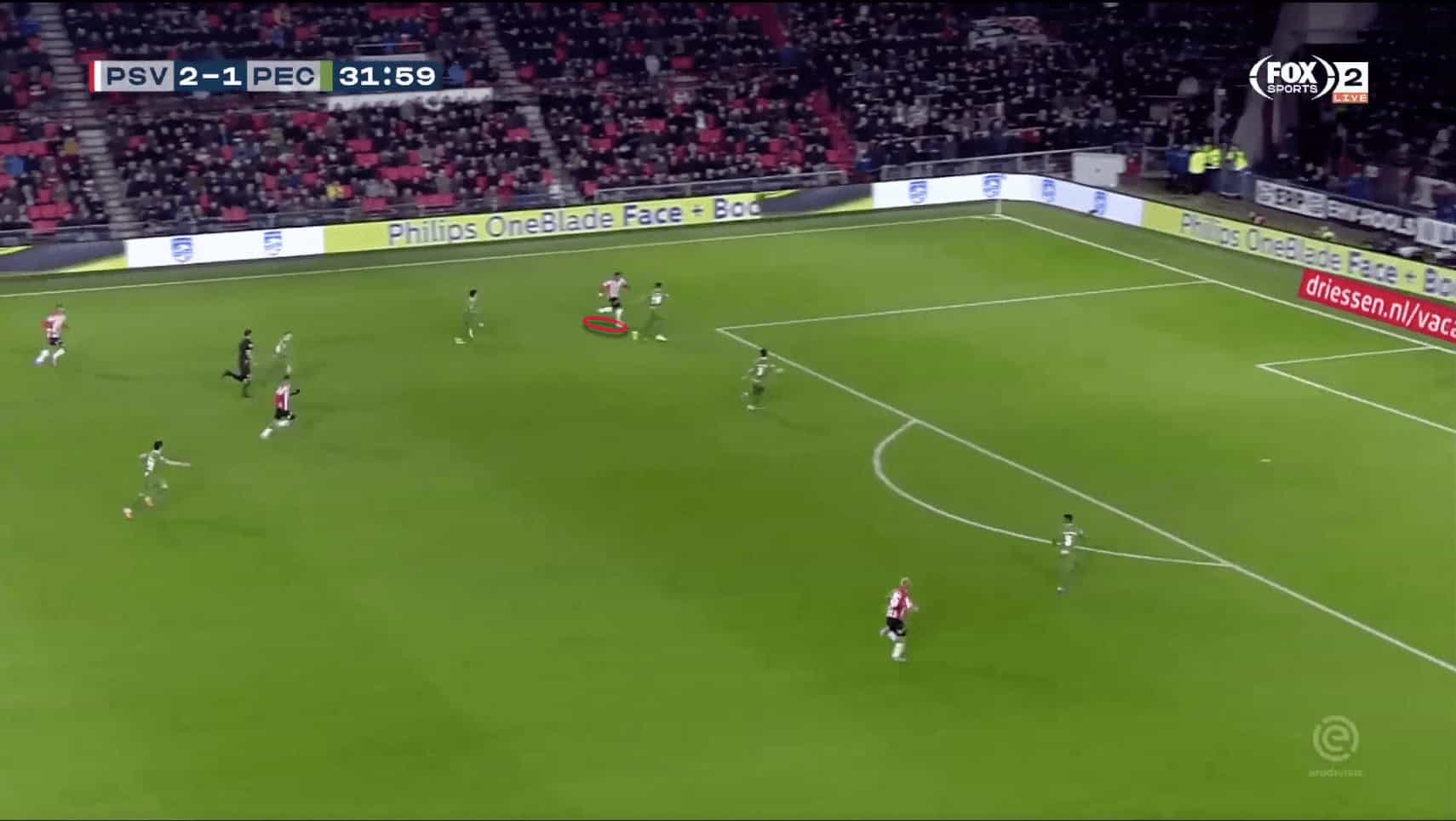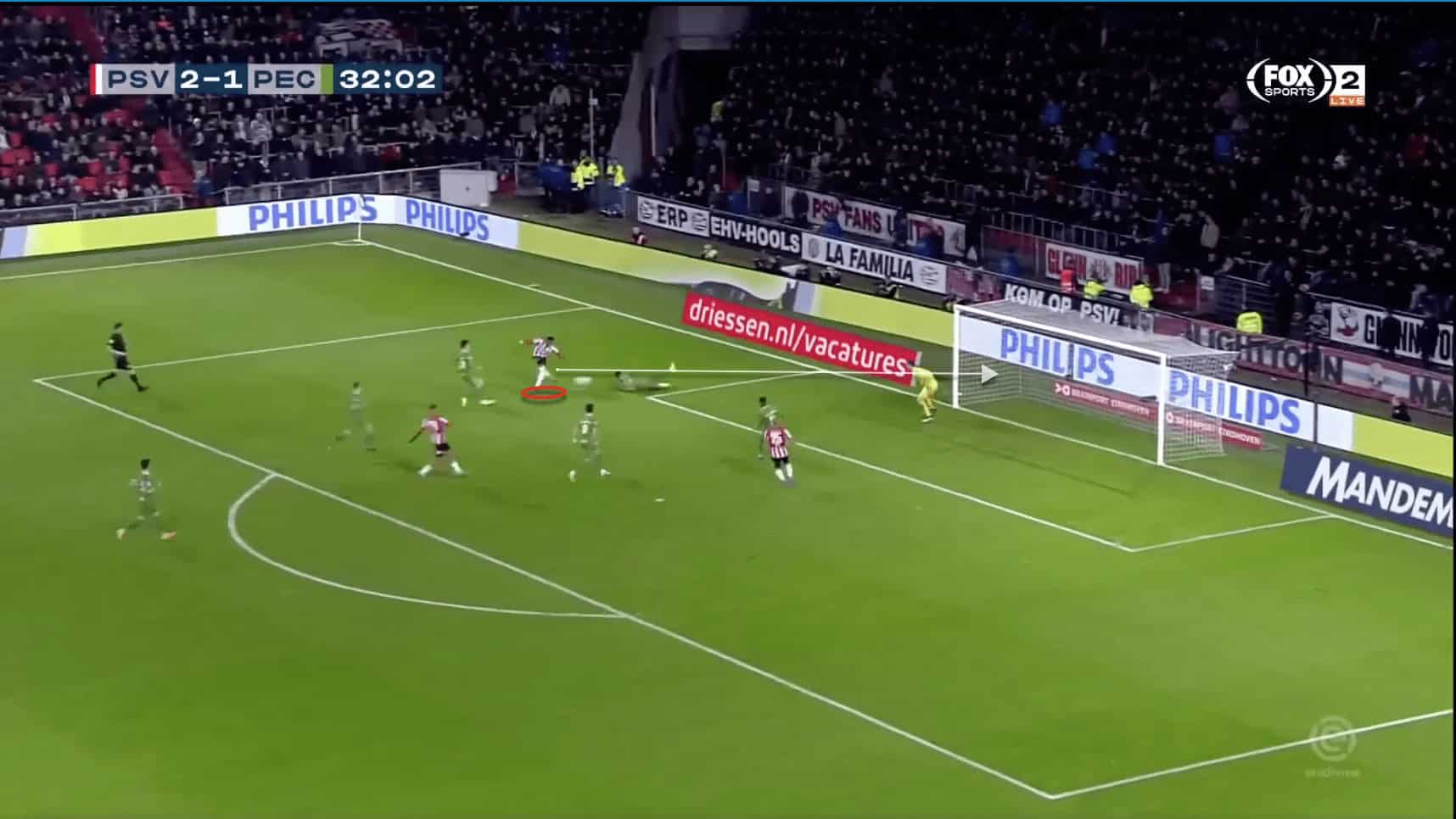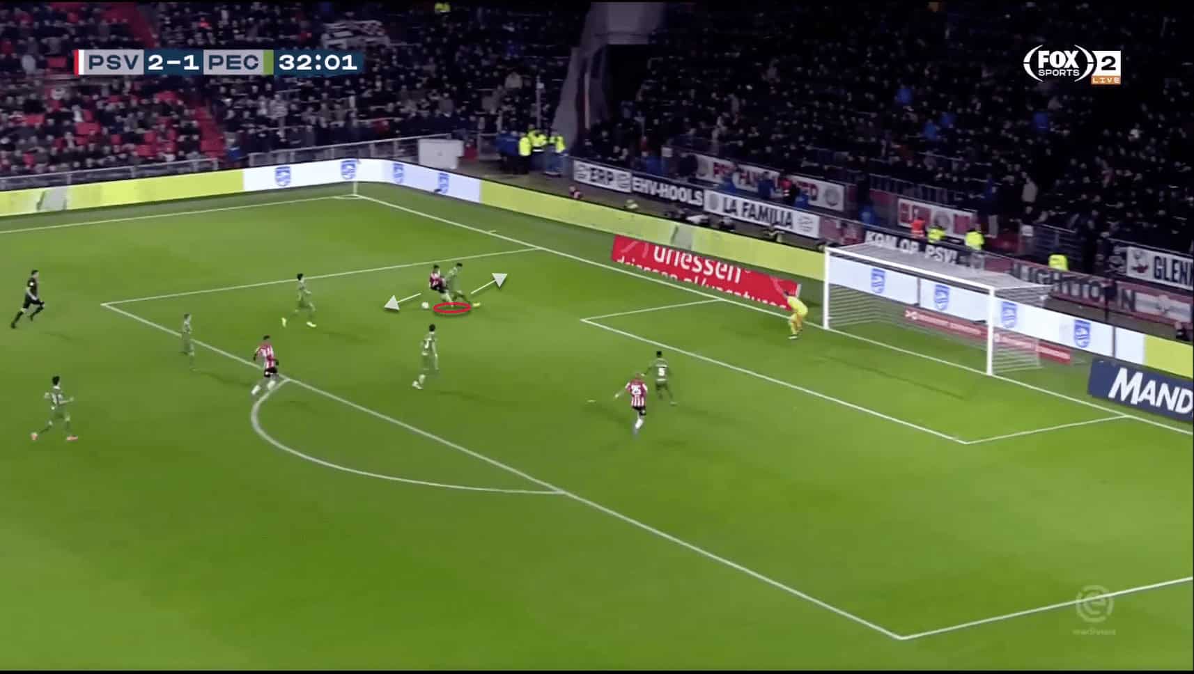 Bergwijn’s advantage when it comes to playmaking is because he primarily plays as an inverted winger. His position as an inverted winger allows him to create chances for himself and his teammates using a couple plays highlighted below.