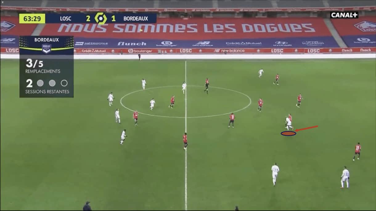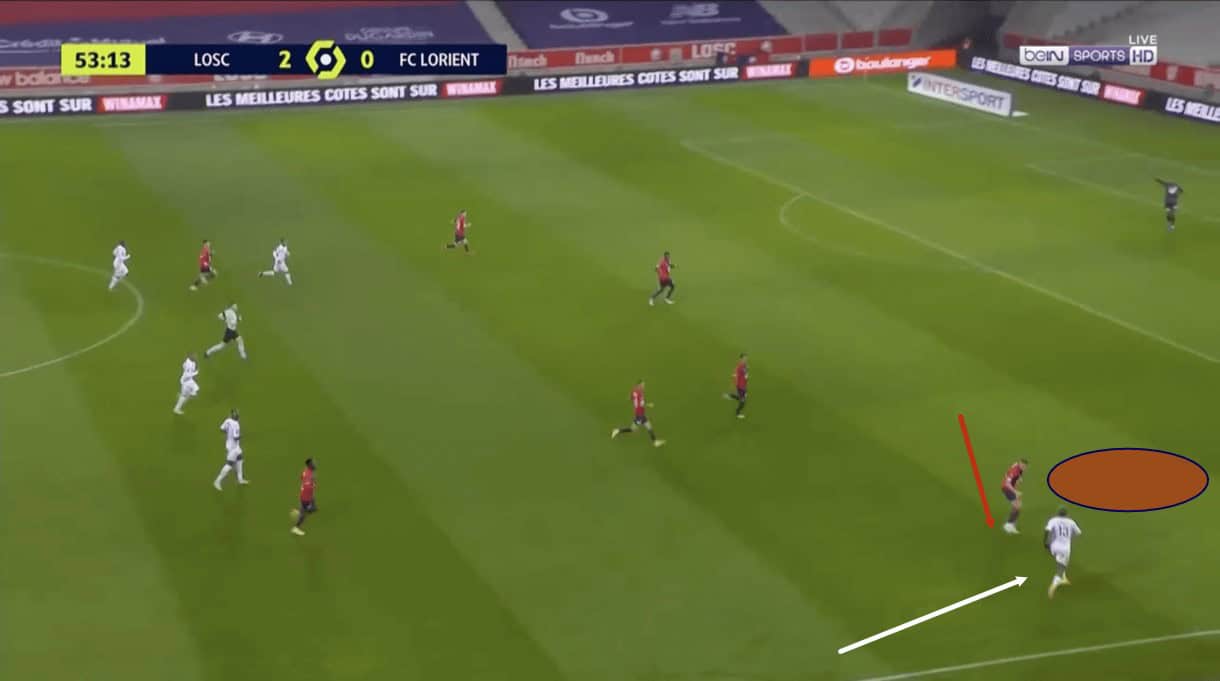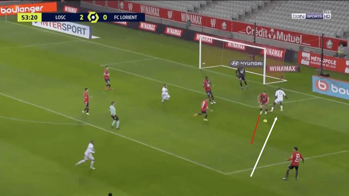 The image above shows us an example of Botman engaging an opposition player out wide, as we’ve established he likes to do, during Lille’s 4-0 win over Lorient earlier this season.