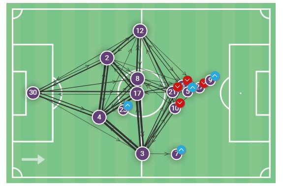 Surprisingly, Toulouse have had the seventh most average possession so far with 51.2%. A stat that is only going to repay them further down the line. As you can see below, their clear structure in the build-up with the back four and midfield two enables them to keep the ball.