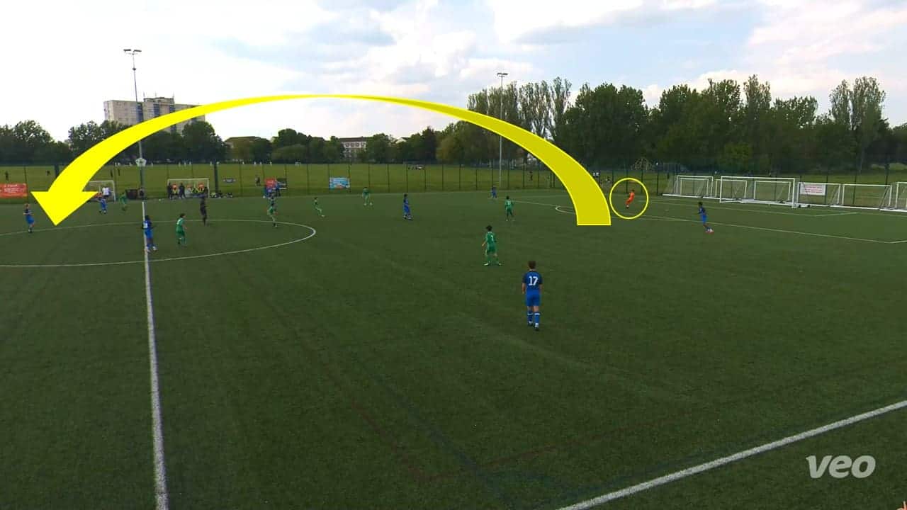 In this situation, Isaacs starts close to his centre-forward partner, encouraging the opposition goalkeeper to pass out wide.