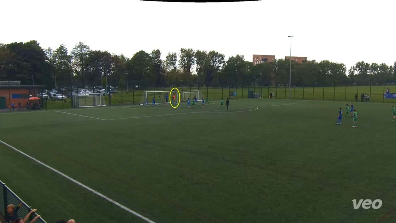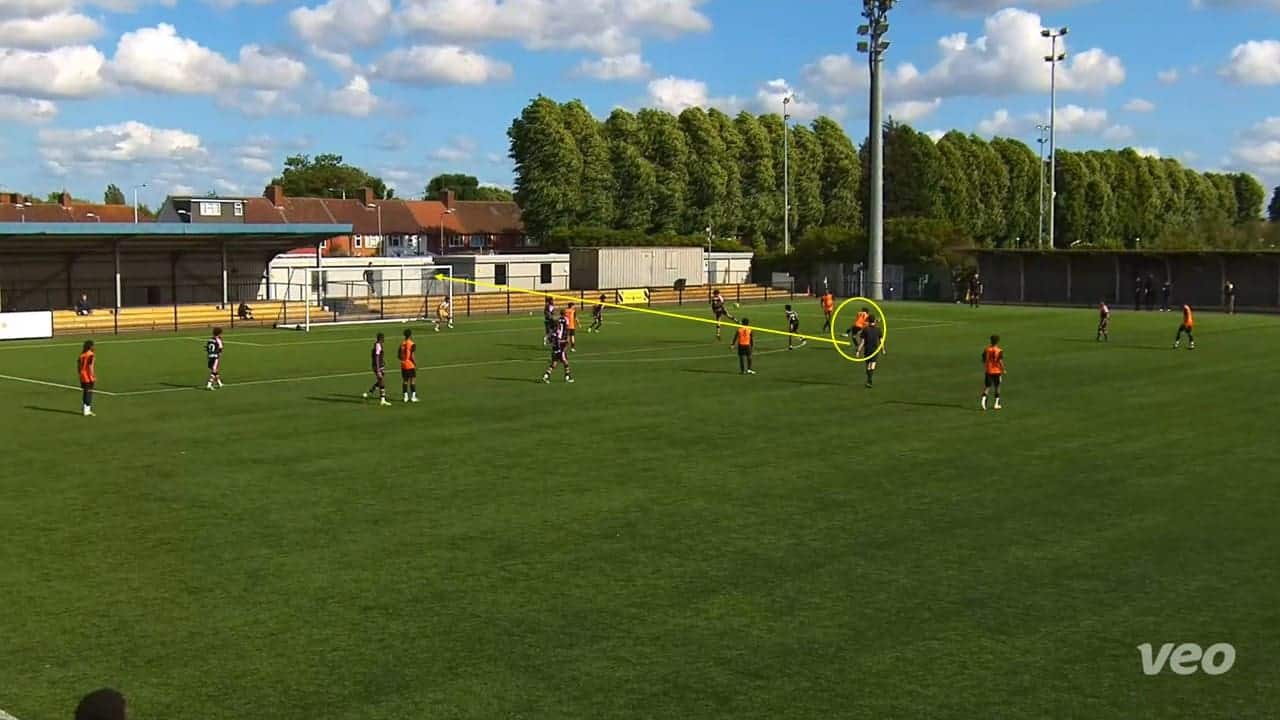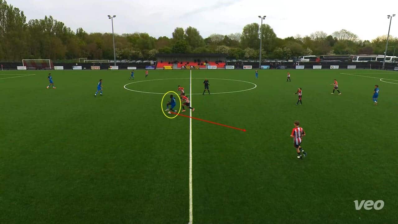 He then breaks forward using his pace and power before playing a fantastic pass to a teammate, making a forward run.