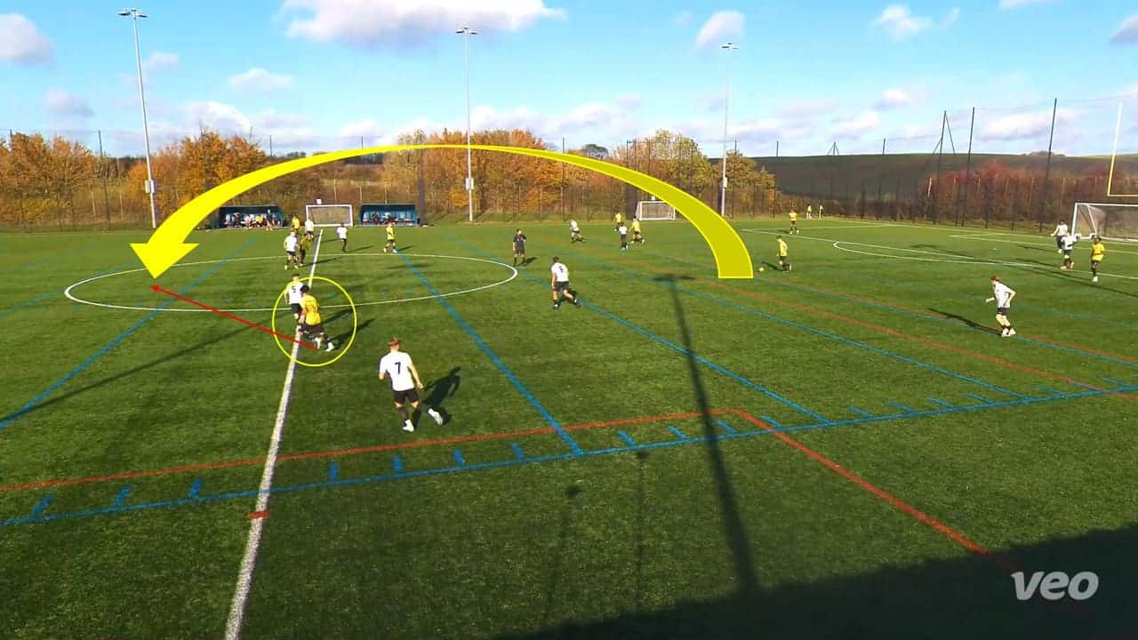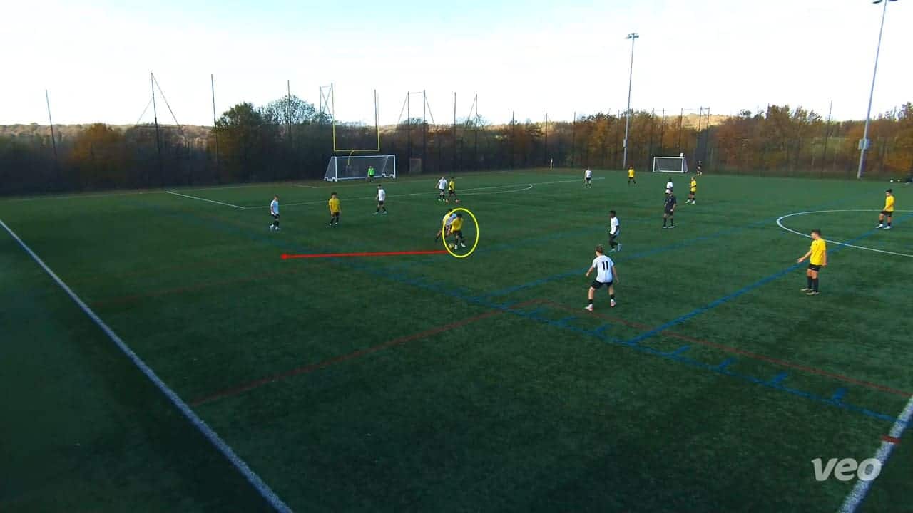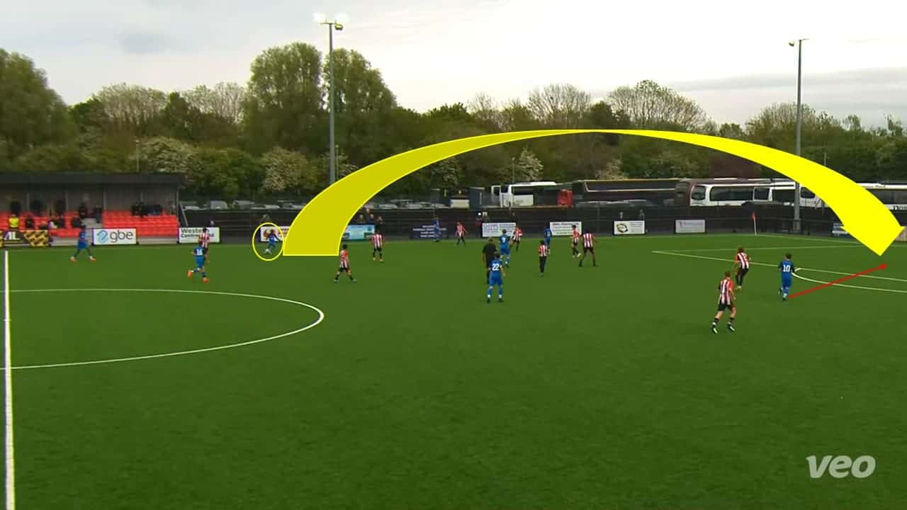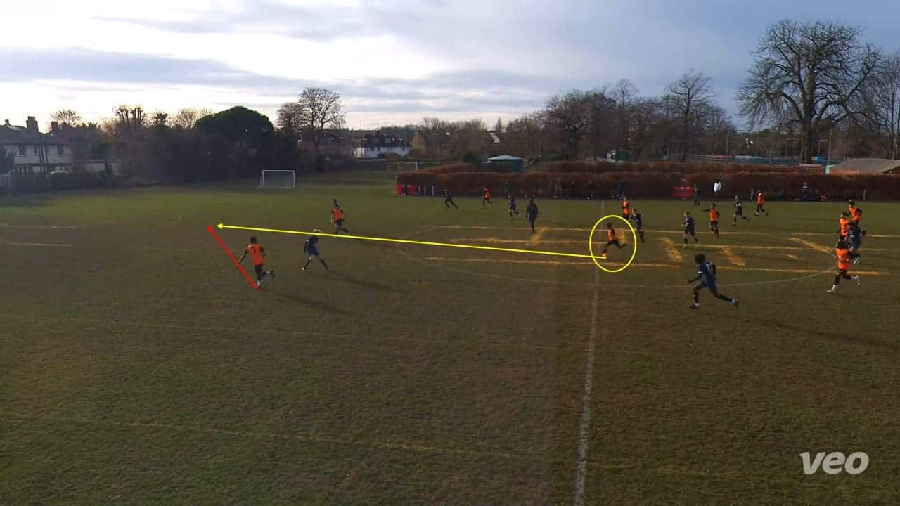 With the player on the ball having time and space, Holden sees an opportunity to get in behind the backline.