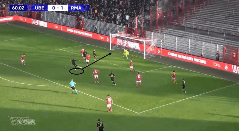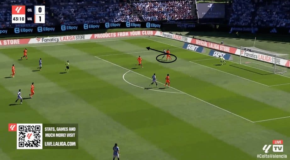 Another crucial aspect of Iker Bravo’s game is his instinct and anticipation inside the box, especially in the air.