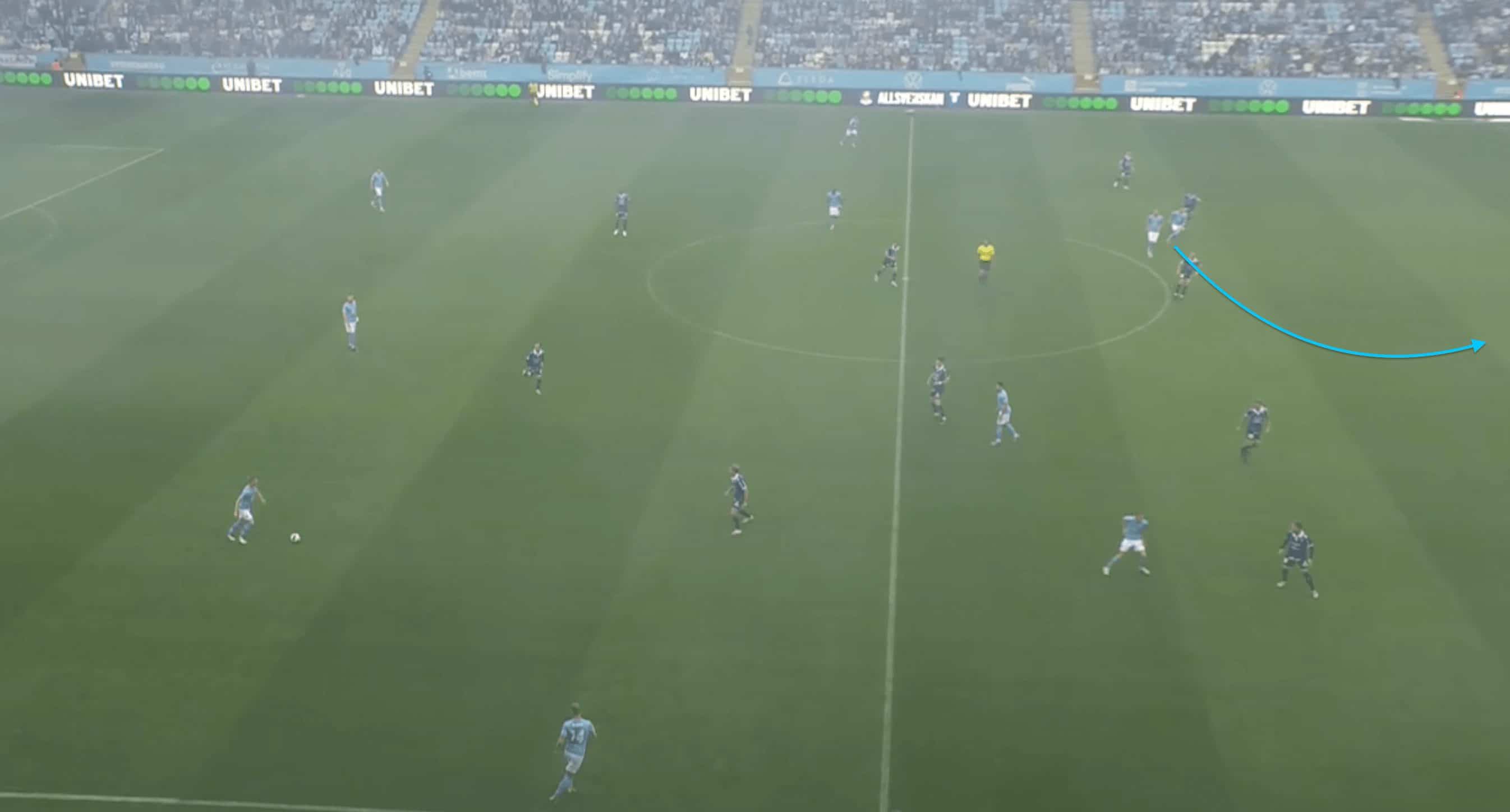 One such example of a cross can be seen in the image above, where he delivers an inswinging cross into the box for his teammate, which again creates a scoring opportunity for his team.