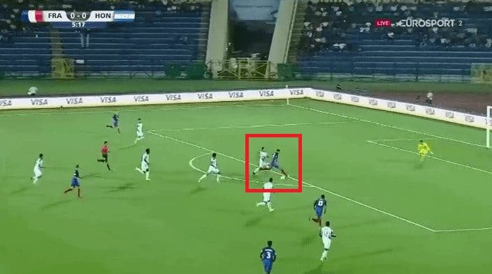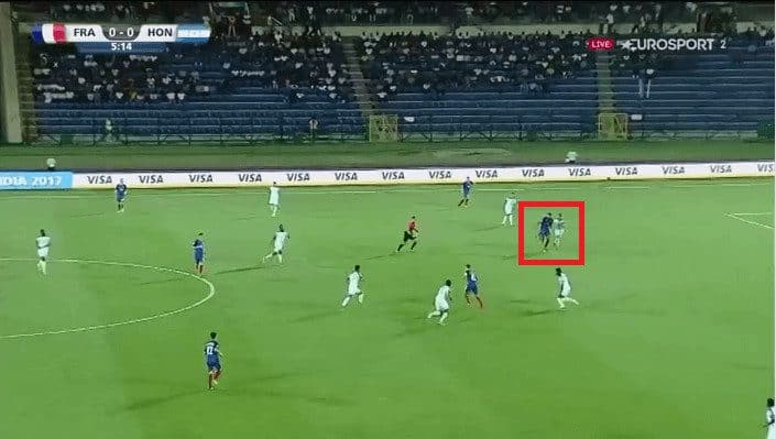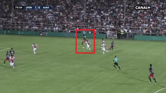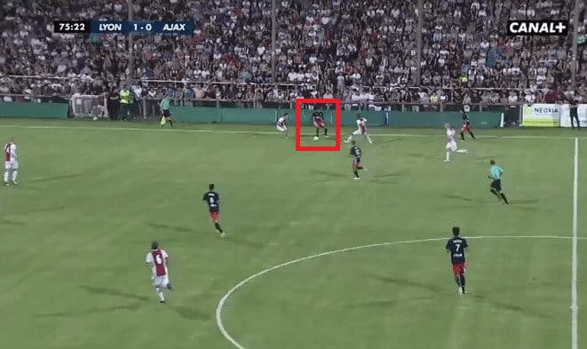 In the picture below you can see Geubbels making a run down the left with the ball on the centre forward’s foot.