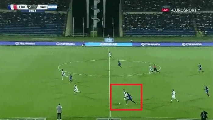 On the left side, Geubbels likes to cut onto his right foot. Below we see him coming down the left sideline.