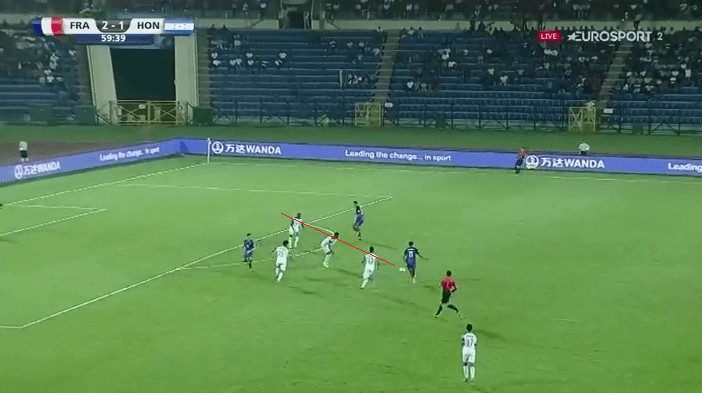 Here we see Geubbels working off the last defender setting up a run in behind.