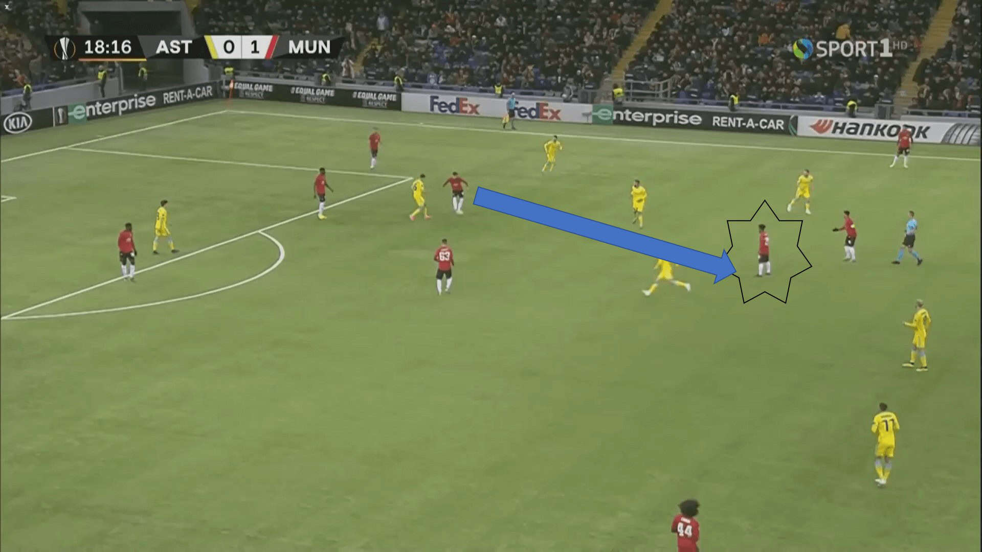 Moreover, we can also see how much space there is for Manchester United players through the middle, thanks to the width generated by the wingers.