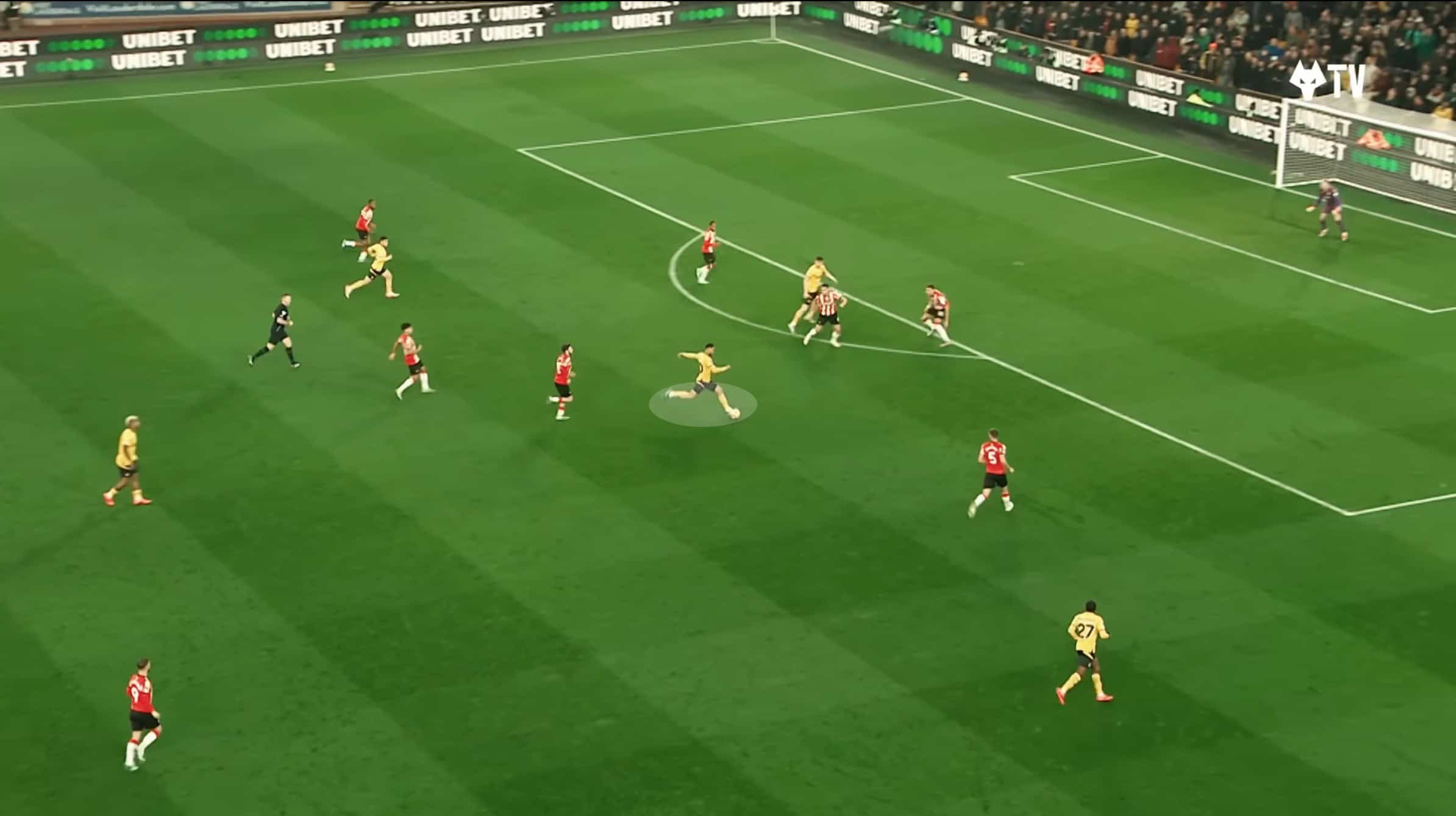 We analysed it; the smart passes from Cunha often came in situations where Wolves had big space to exploit behind their opponent‘s defensive line.
