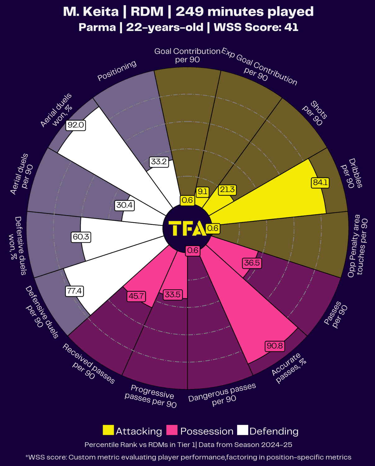 Keita’s journey to Serie A has an interesting story: he spent last season on loan at Royal Antwerp before making that move permanent in July 2024 for £4.1m—he moved to Parma less than two months later for £9.9m!