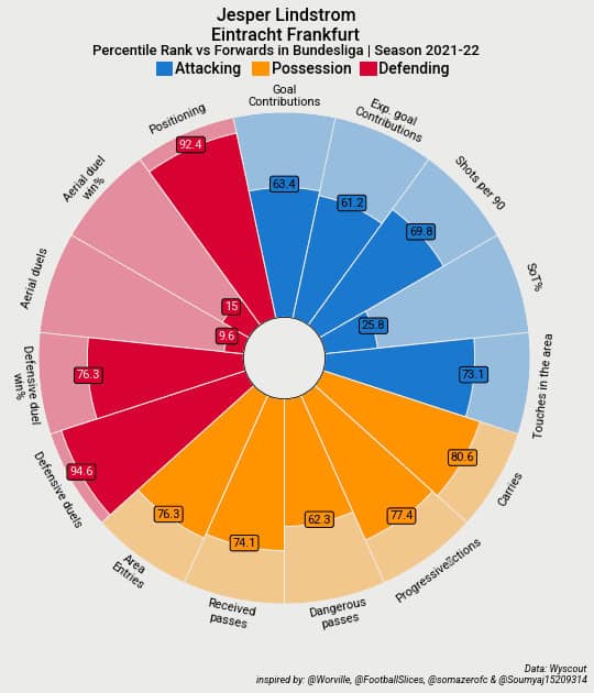 Finally, we have Jesper Lindstrom as the Danish international is currently averaging 15.26% of Eintracht Frankfurt’s goals and 18.5% of their xG.