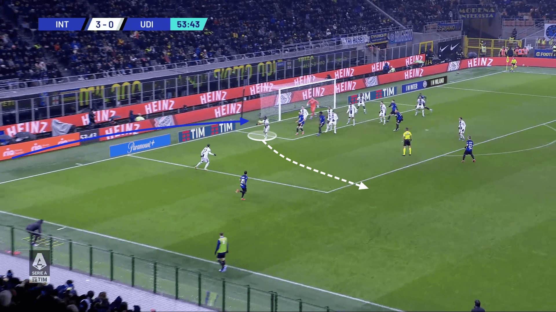 Whilst every defender in the box has the possibility to clear the ball, only this player can kill the attack. If the cross fails to clear the first man, he can either clear the ball first-time with a volley or control the ball and dribble out of the box before picking out a pass like in the example against Inter??below. However, if the ball clears the first man, every other defender competing for the ball will only be able to clear the ball with their head.