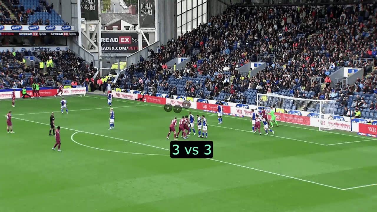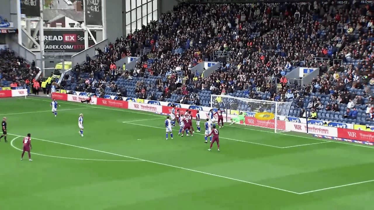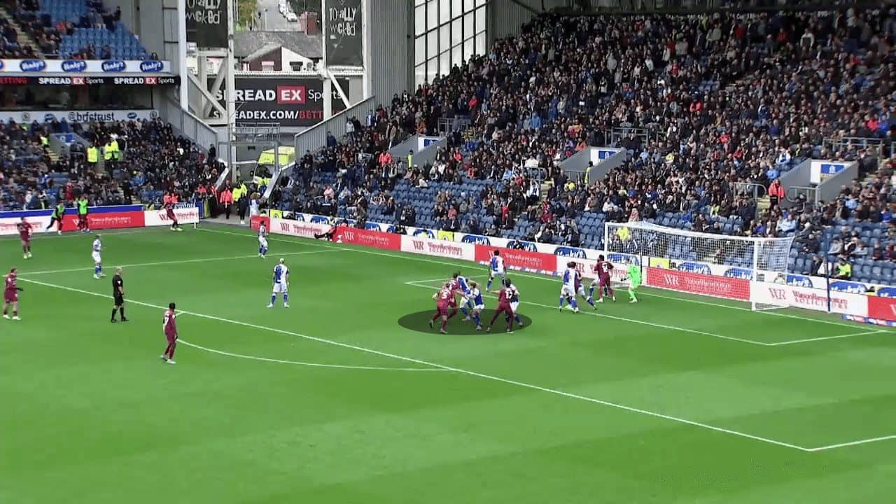 In this tactical analysis, we will discuss the reasons for Cardiff City’s superiority in attacking corners and their different tactics to highlight their players’ abilities in aerial duels for scoring, especially using stacks. We will also explain their use of short corners to surprise the opponent and achieve the principle of variation.