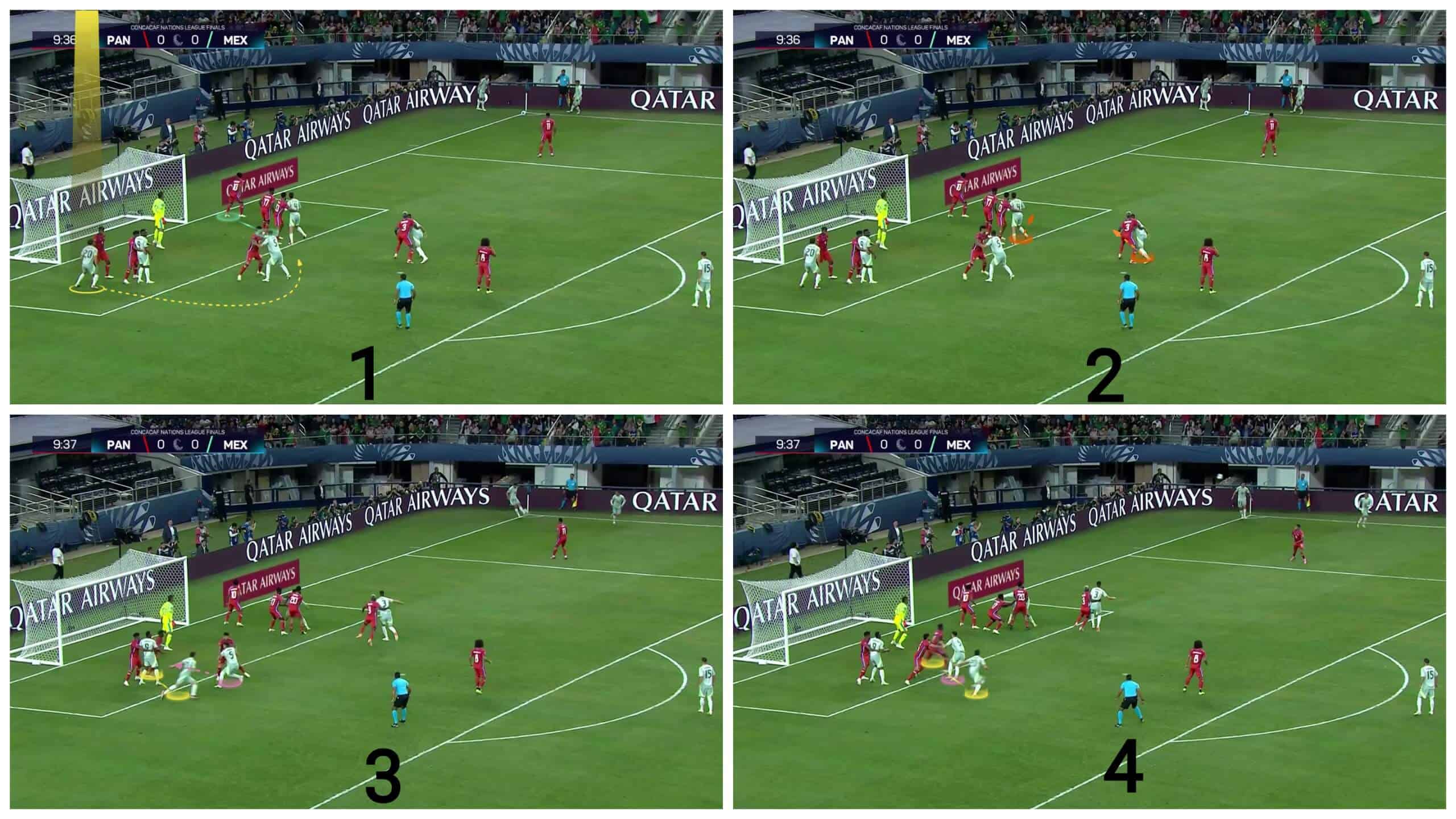 In this set-piece analysis, we have shown that Mexico uses blocks and screens excellently, along with many other assistant ideas, like packs and stacks. We have also shown how they are diverse and can use different ideas against hybrid systems, like overloading against man markers.