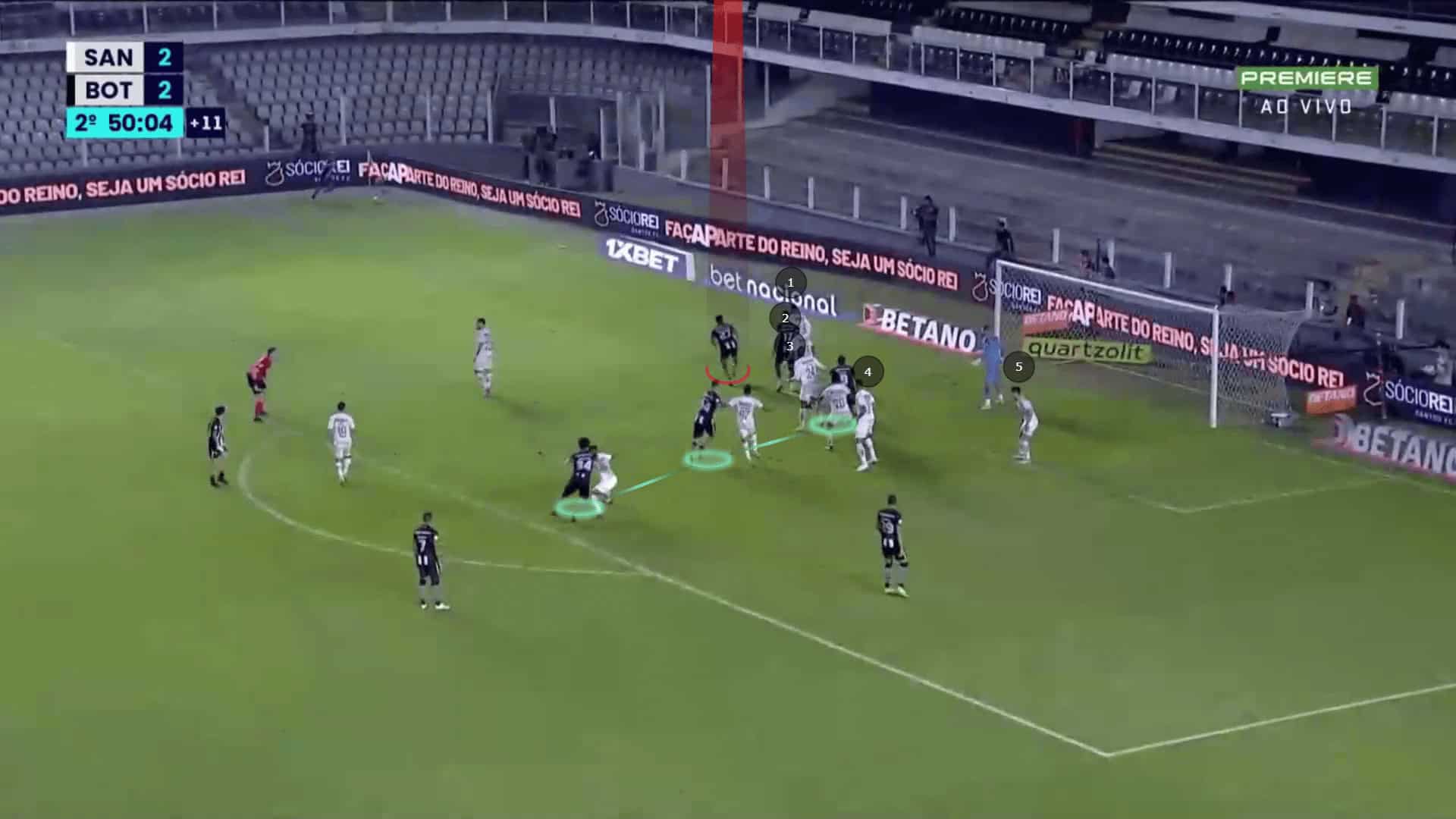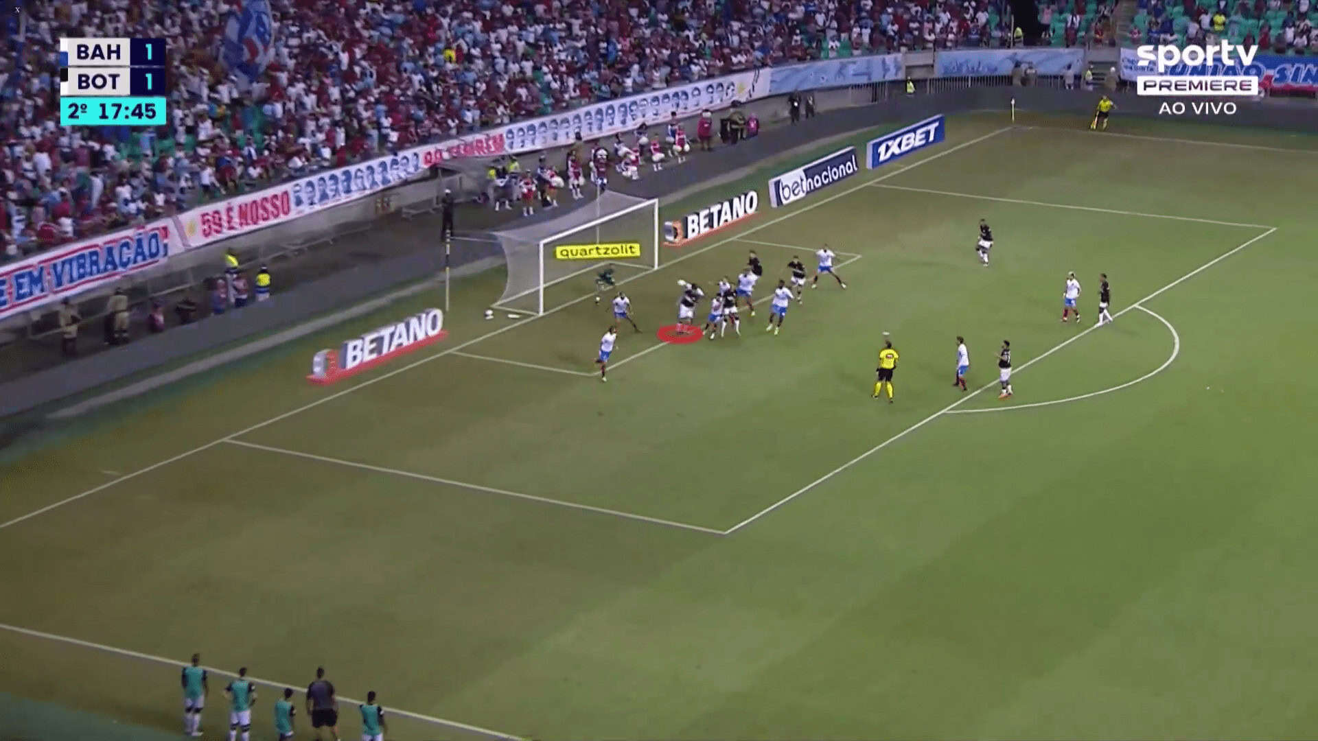 So Botafogo overloaded the penalty spot area by six runners to be in a 6v3 situation.