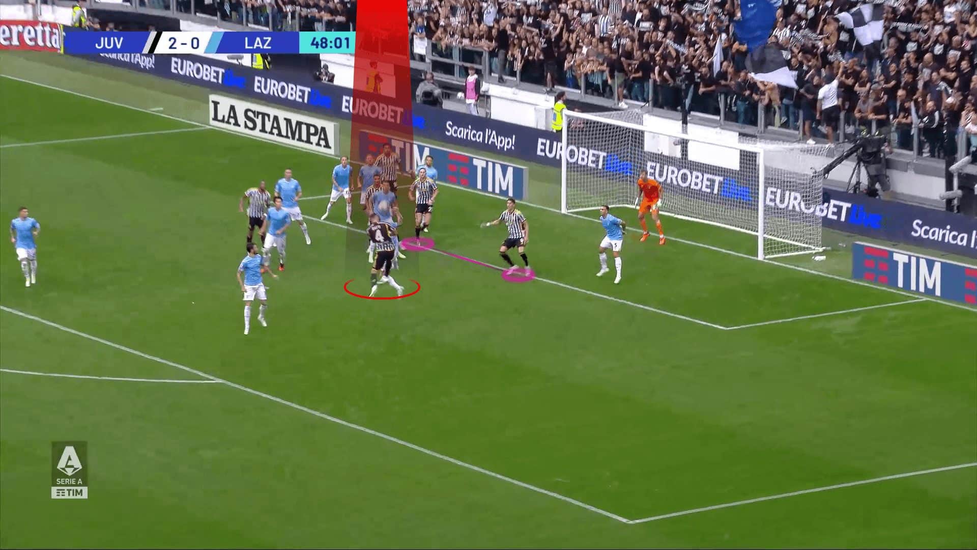 They also have another plan depending on underloading, but this time, the first targeted player nods the ball to a nearer area to make sure that the headed shot will threaten the ball more and more, so let’s take a case from their match against S.S. Lazio.