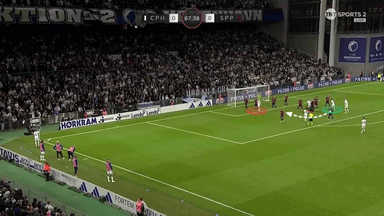There have been some instances where heavier zonal defensive setups have meant that it became more difficult to gain access to high-value areas around the six-yard box. In efforts to draw the opposition away from the goal, København have utilised short corners.