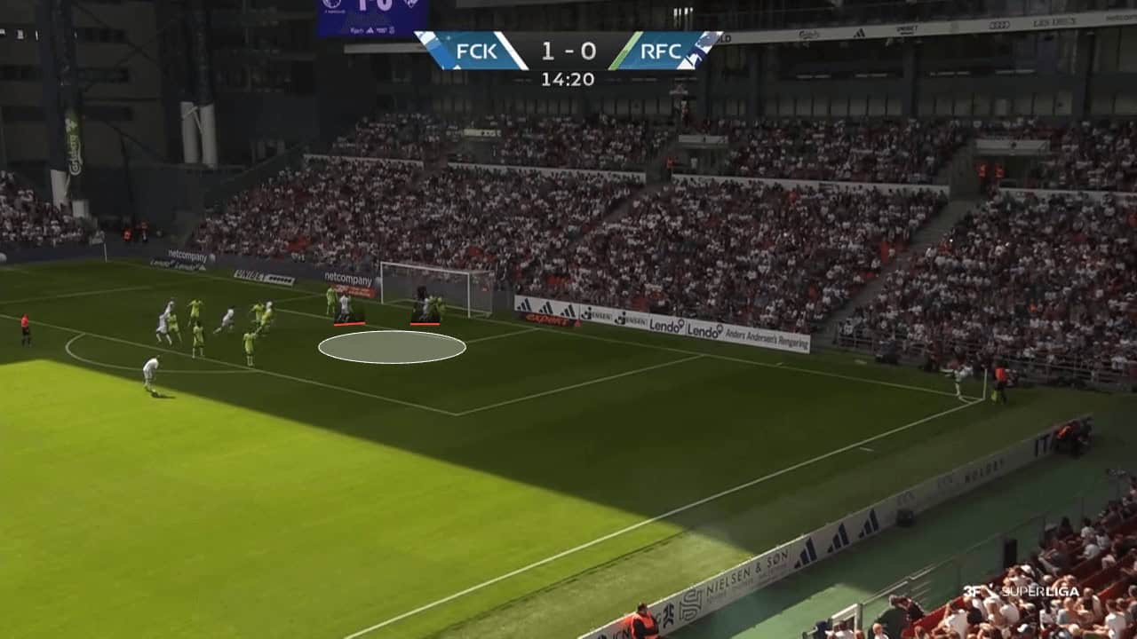 In the previous campaign, København used clever movements, near post-attacks and deep starting positions to create many dangerous opportunities. The set plays have evolved this season, with a bigger focus on using screens in order to have a more consistent method of creating chances from corners. Using runs from deep or attacking spaces at the near post proved to be effective, but teams could start to prepare for specific routines that were effective.