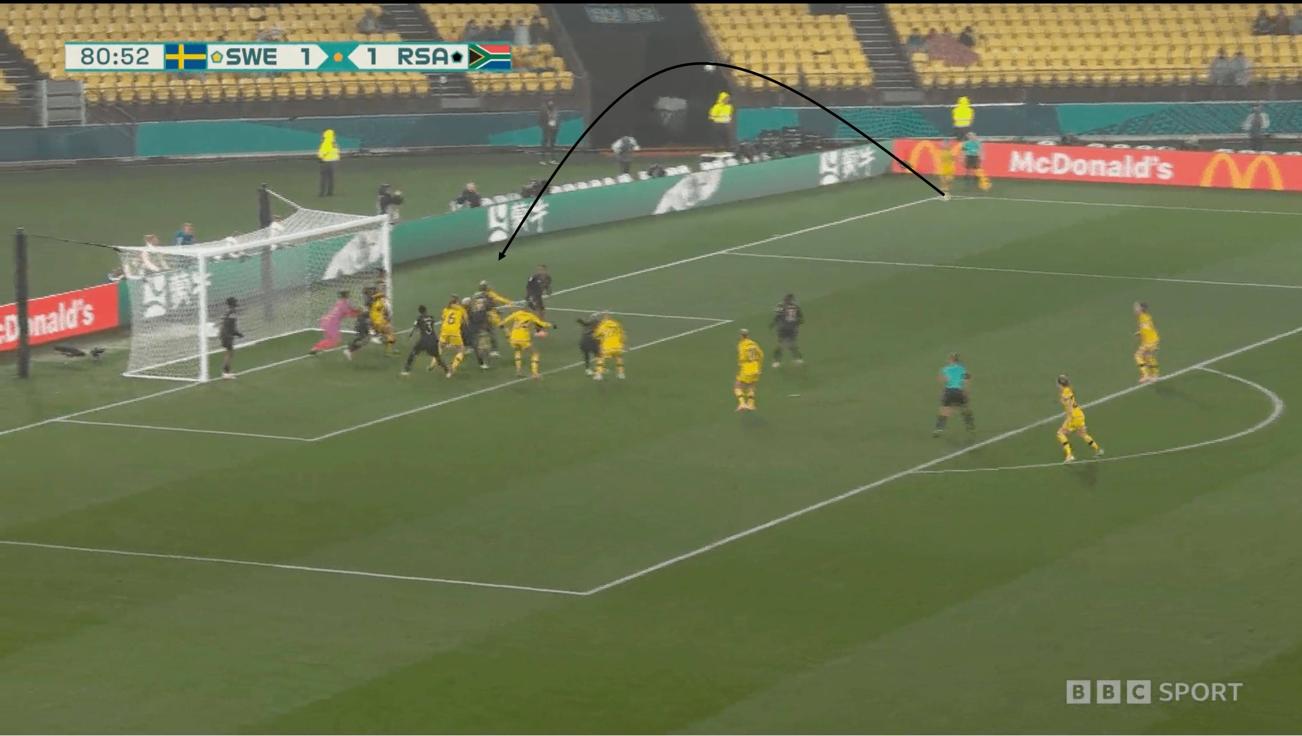 However, Sweden have been aiming these deliveries into the six-yard box, almost at the goalkeeper, where it seems like it should be easy to claim or punch, no matter how big or small the goalkeeper may be.