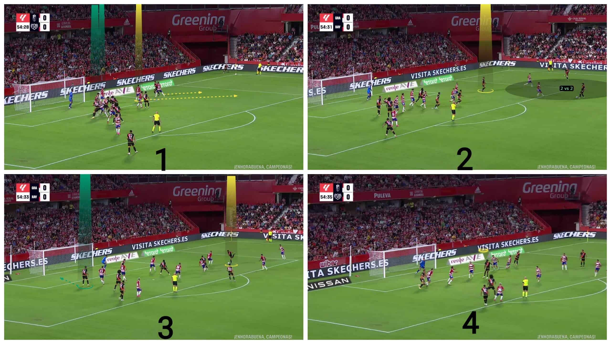 In this analysis, we have discussed the defensive structure of Granada in defending against corner kicks, elucidating the weaknesses that have rendered them more susceptible to conceding goals from corner kicks in La Liga thus far.