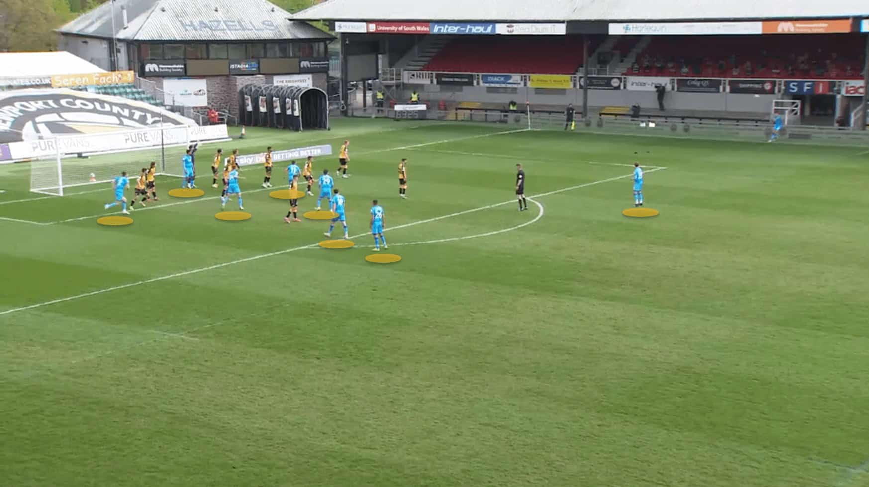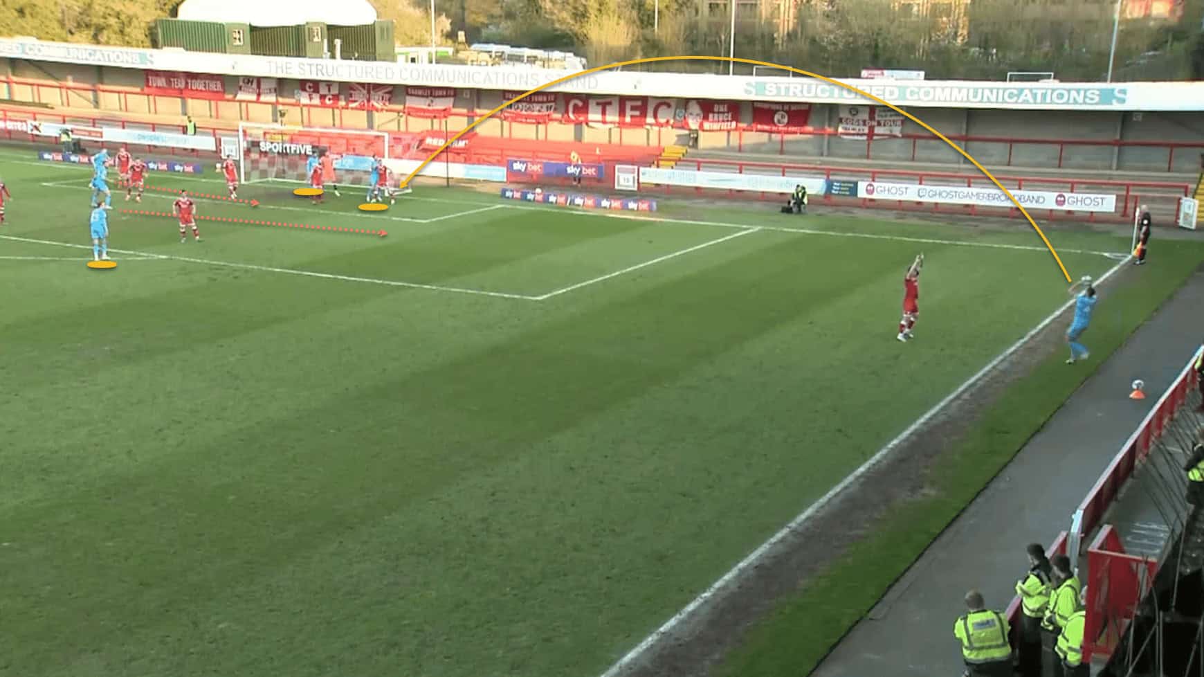This has been a fairly innovative tactic from Cheltenham Town – most teams only use long throw-ins towards the end of matches when they are losing, and that too as a desperate attempt to get the ball into the box quickly, rather than through any well-coached routines.