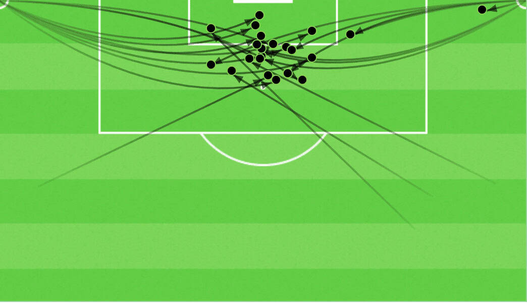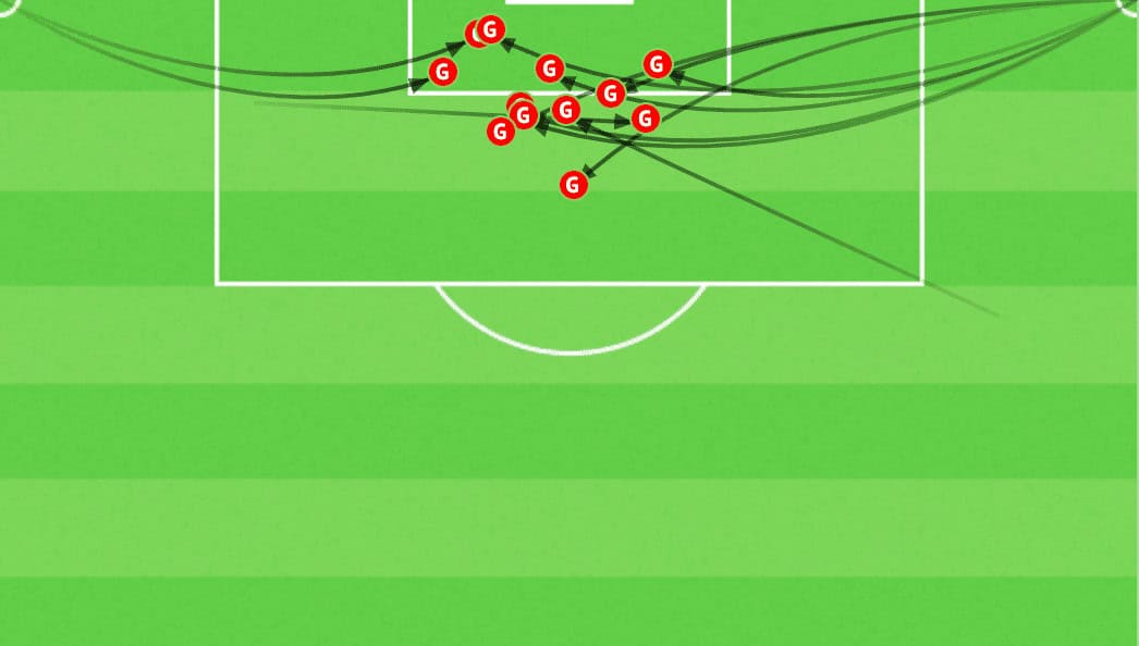 If we looked at all their conceded goals in 2021/22 defensive corners, the most catastrophic area is around the same space we pointed out above. Only one of them