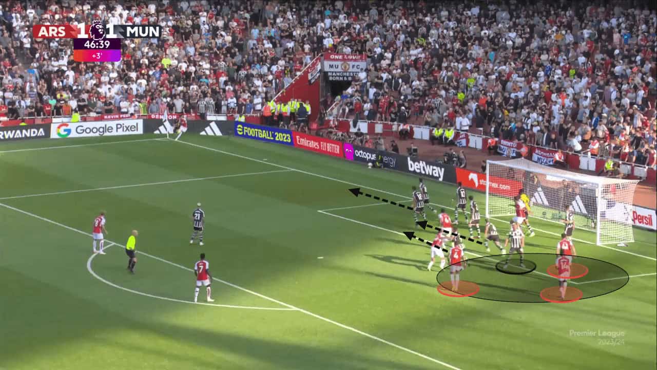 Defensively, Manchester United need to be adaptable to avoid opponents gaining numerical superiority in the penalty area and, at the least, show a reaction after a team has exposed a gap in their defensive setup. Like in the Arsenal game, United need to be able to admit their weaknesses at the back post and alter their setup to prevent the opposition from creating any additional chances rather than being stubborn and sticking with the same setup.