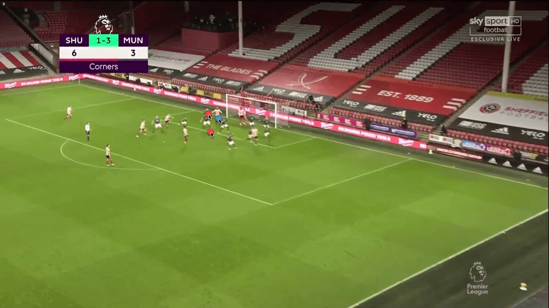 Another goal conceded, this time against Sheffield United, showed issues with United’s marking and spacing, although this was not as egregious as the Leeds example.