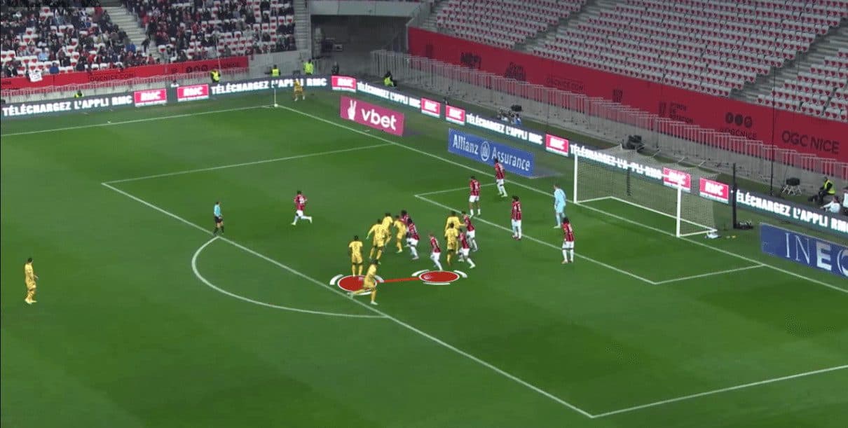 In this analysis, we have explained the scheme of the best set-piece defending team in France showing how Nice could make a balance between zonal marking and man-marking defending systems to achieve the advantages of the hybrid system.
