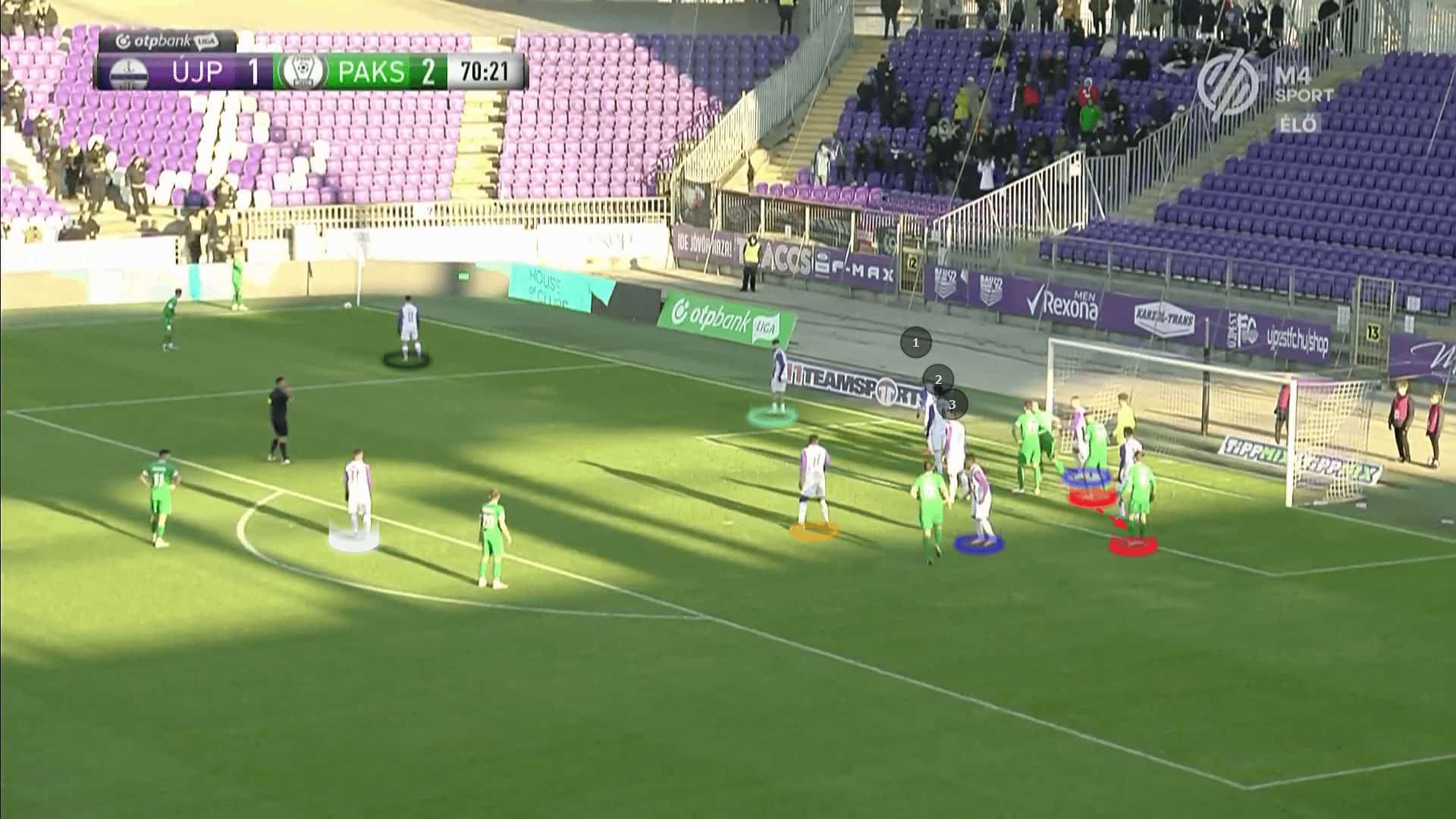 In this tactical analysis, we will discuss the tactics of Paksi FC in set pieces, especially their offensive corner kicks, under the leadership of their coach, Bognár György, and we will explain how excellent they are in exploiting them despite their simplicity. Still, they use their strengths well by taking advantage of all the factors that increase the likelihood of corner kicks to goals.