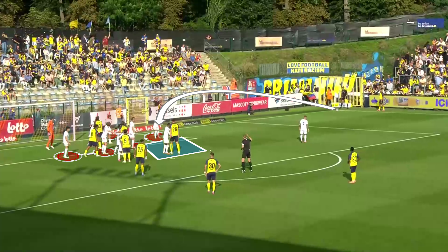 You can also see that the additional player (white) waits in case the cross is overhit, so Royale Union Saint-Gilloise have multiple options to ensure that they get the cross against any scenario.