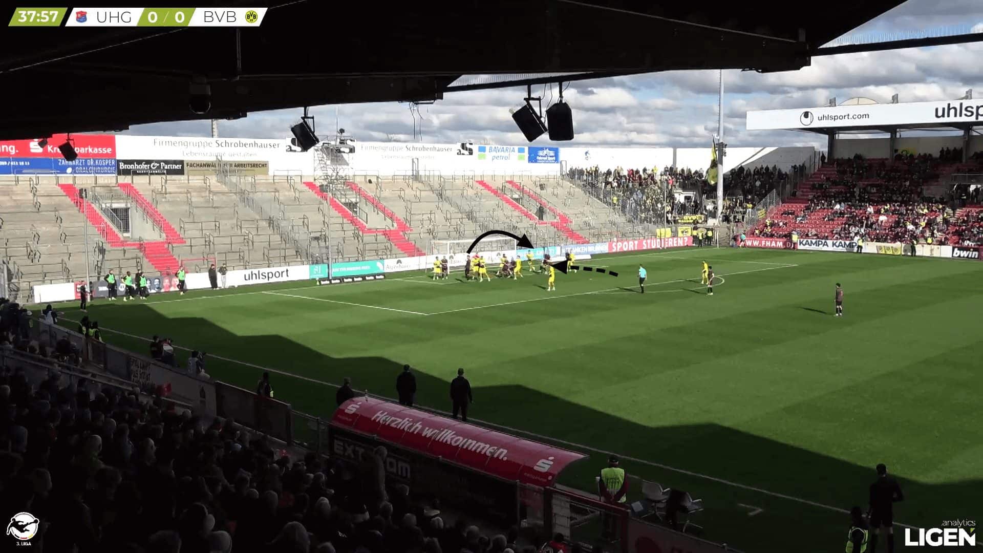 In this tactical analysis, we will examine the tactics behind Unterhaching’s corner kicks, in-depth analysing how they are able to access the near side of the six-yard box. This set-piece analysis will also examine the details behind why they attacked this part of the box, the details behind the different screens that are utilised, and the importance of timing and coordination when using screens.