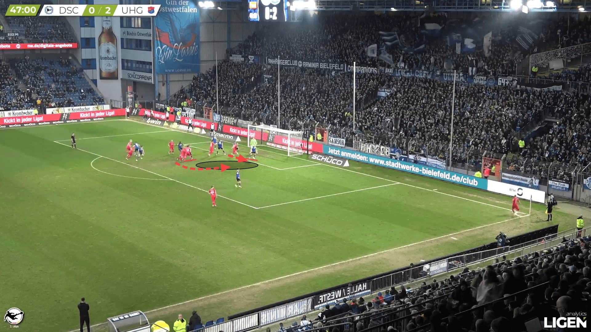 First of all, it is important to remember the context. We are in the third tier of German football, with a squad recently promoted from the fourth tier. The quality and consistency of the deliveries coming into the box are less reliable than we can expect at the highest levels of football. It can be particularly difficult to have the accurate weight on the cross for the ball to drop in specific horizontal zones, where the ball has to miss out on certain zonal defenders and drop in front of others.