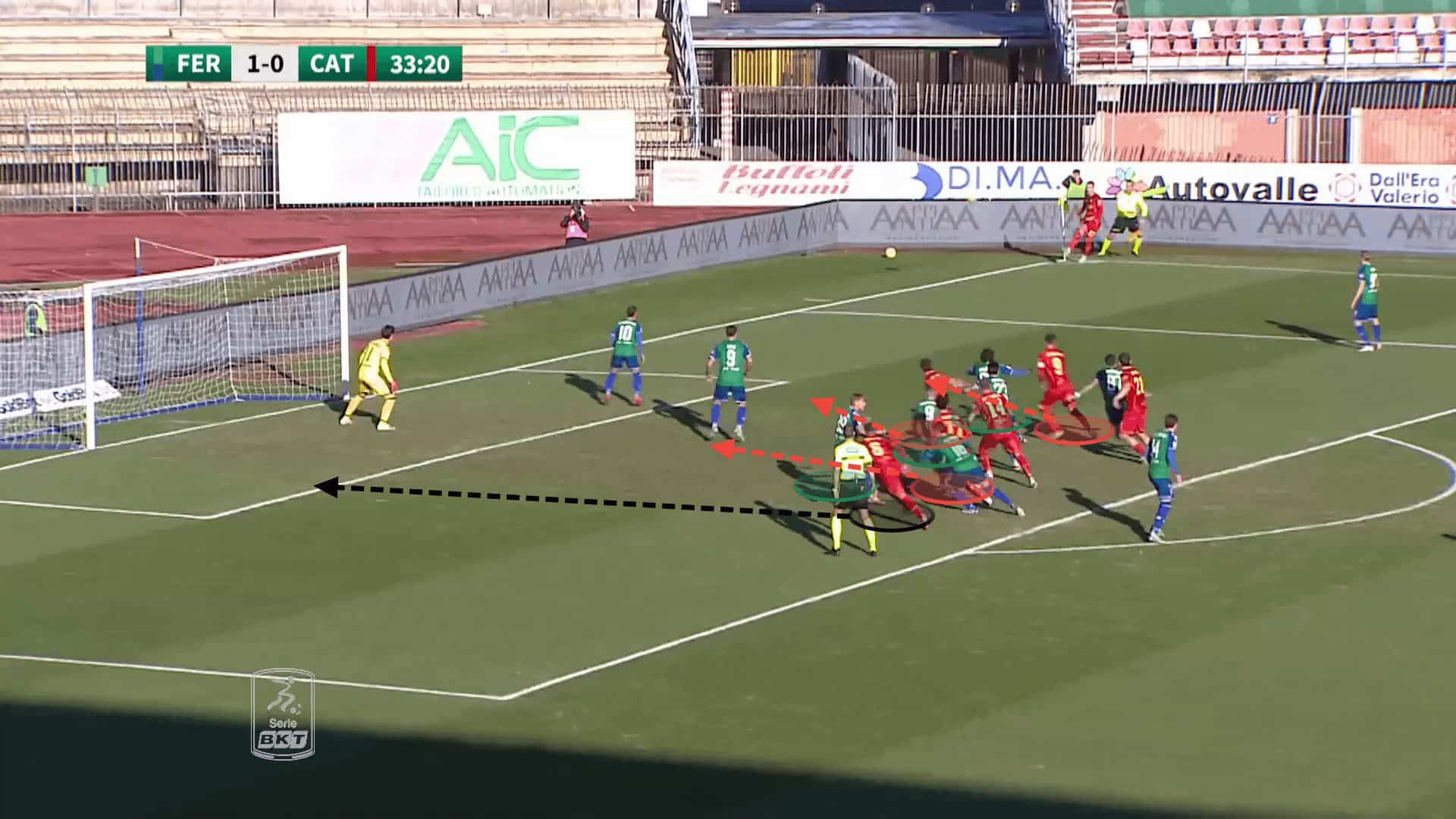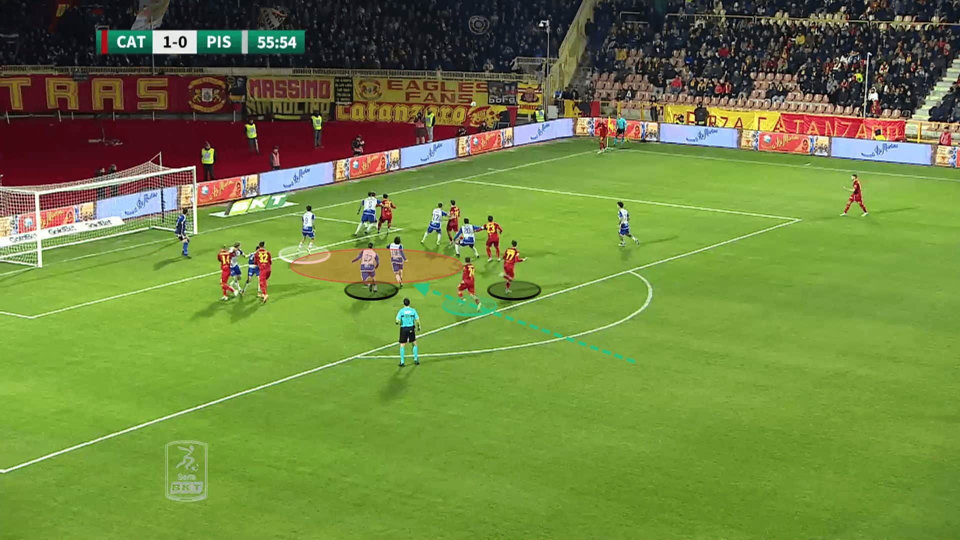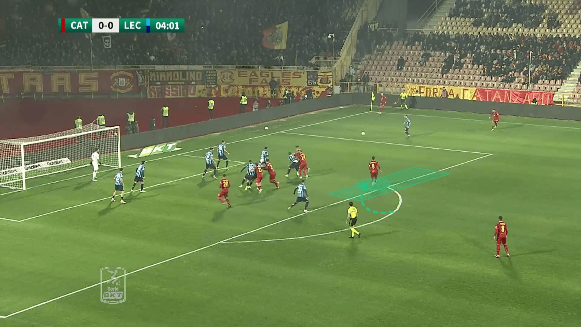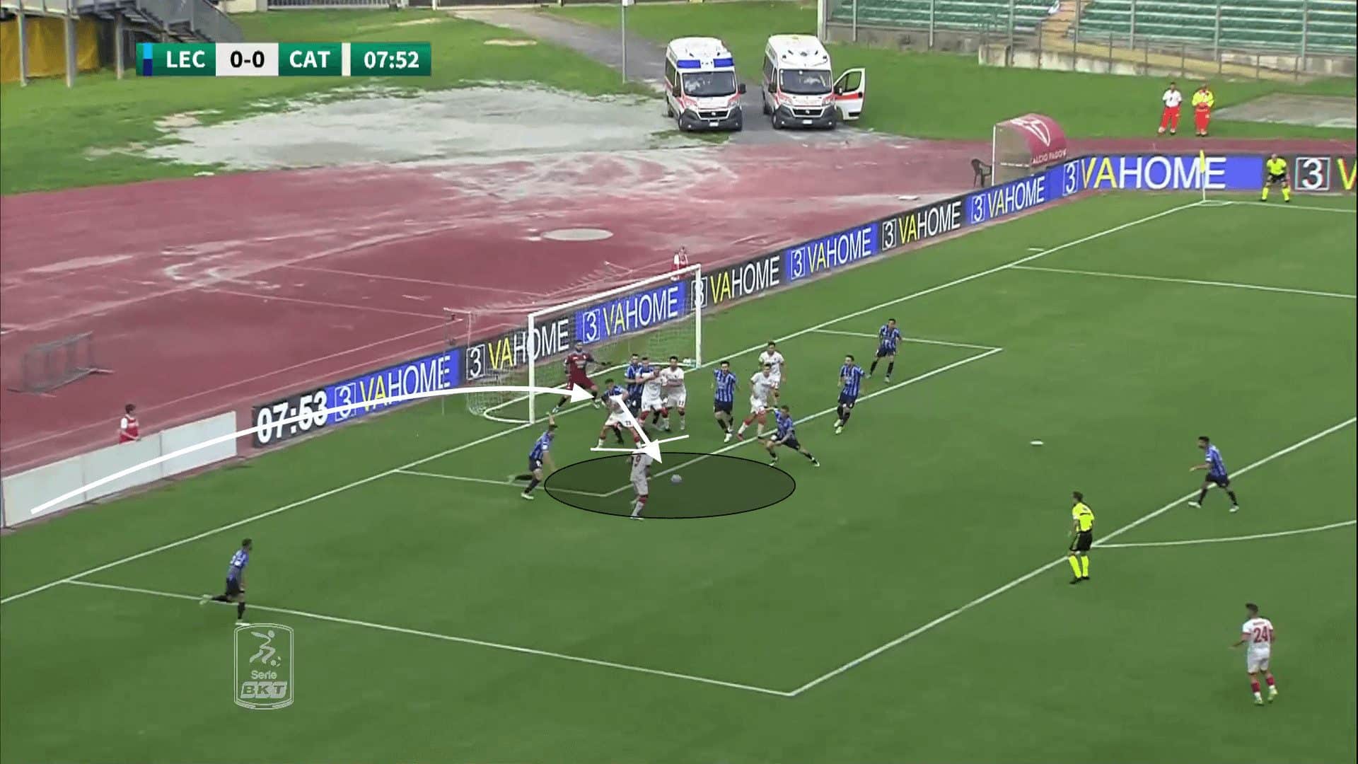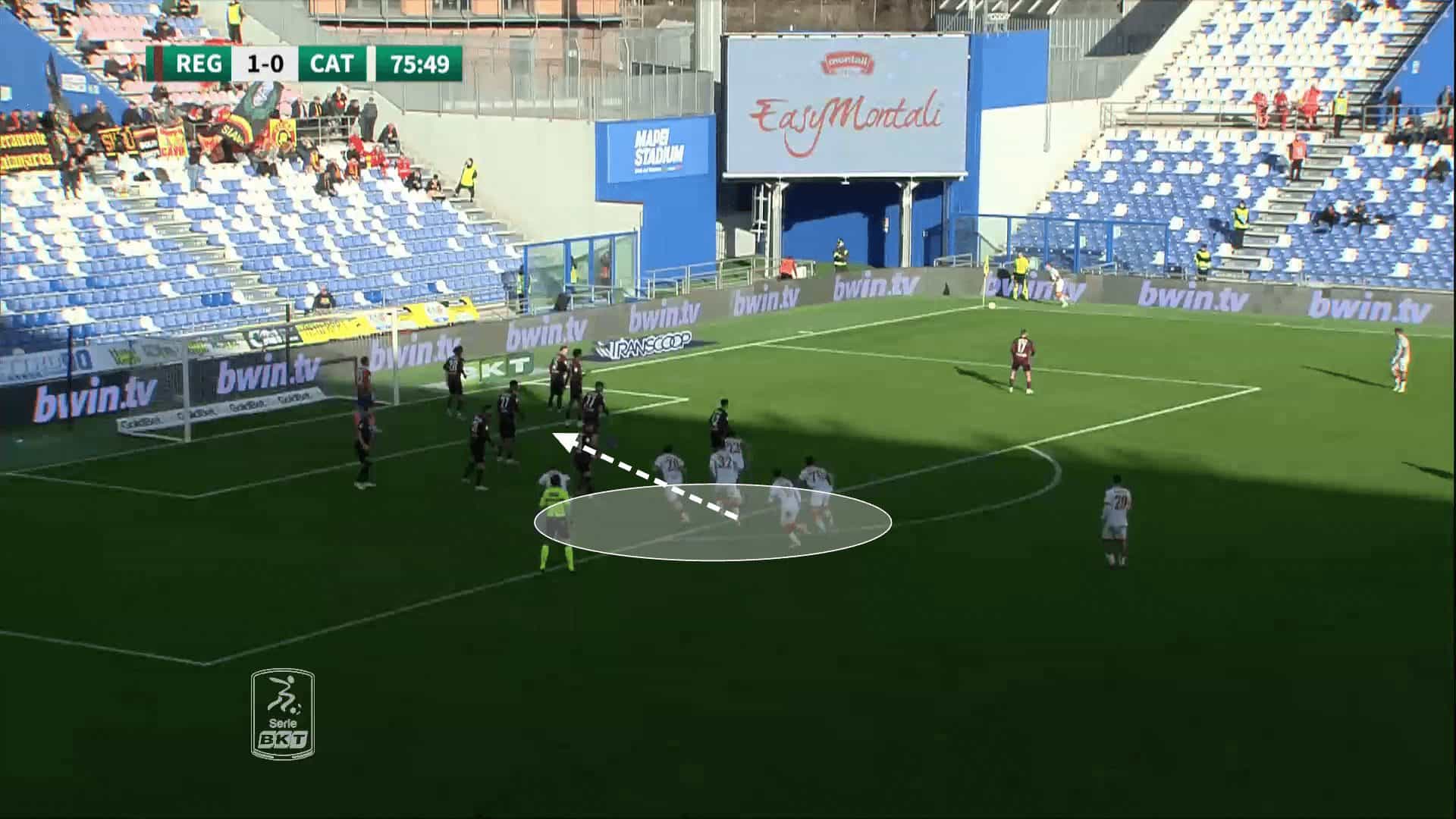 Forcing the goalkeeper to remain on his line also allows Catanzaro to deliver the ball into more dangerous areas, inside the six-yard box, with no danger of the goalkeeper instantly claiming it.