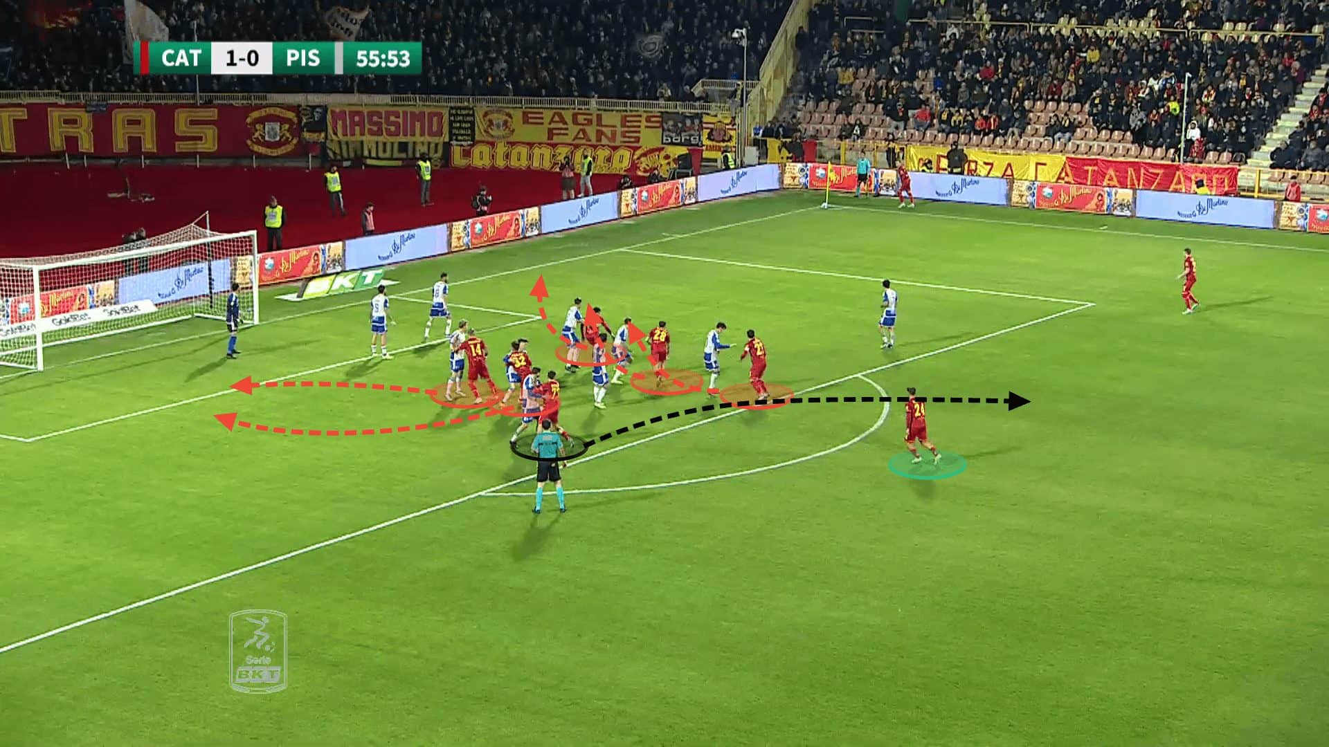 In this tactical analysis, we will examine the tactics behind US Catanzaro’s offensive set-pieces under Vincenzo Vivarini, with an in-depth analysis of the key details behind their use of decoy runs.