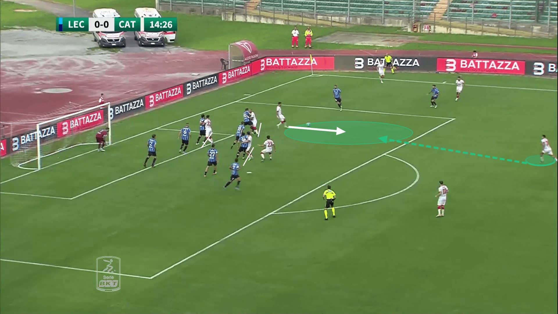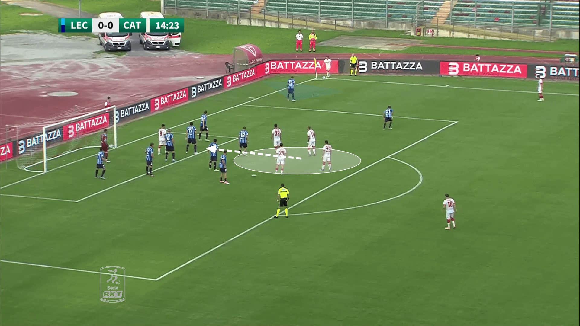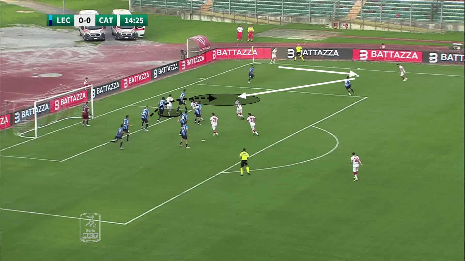 However, while some teams aim to attack the space already available inside the penalty area, Catanzaro occupy the space they intend to attack, before making decoy runs away from that space.