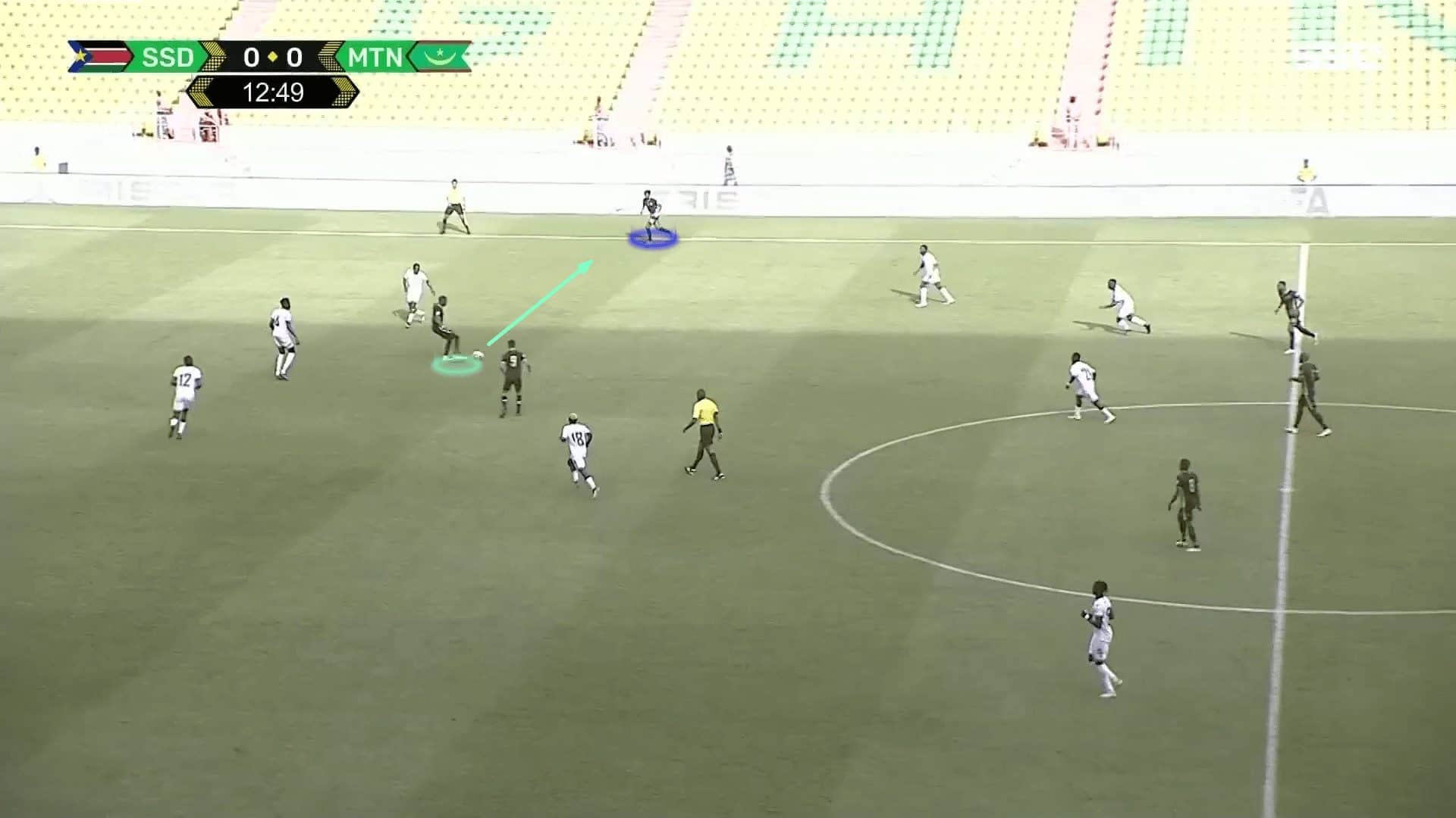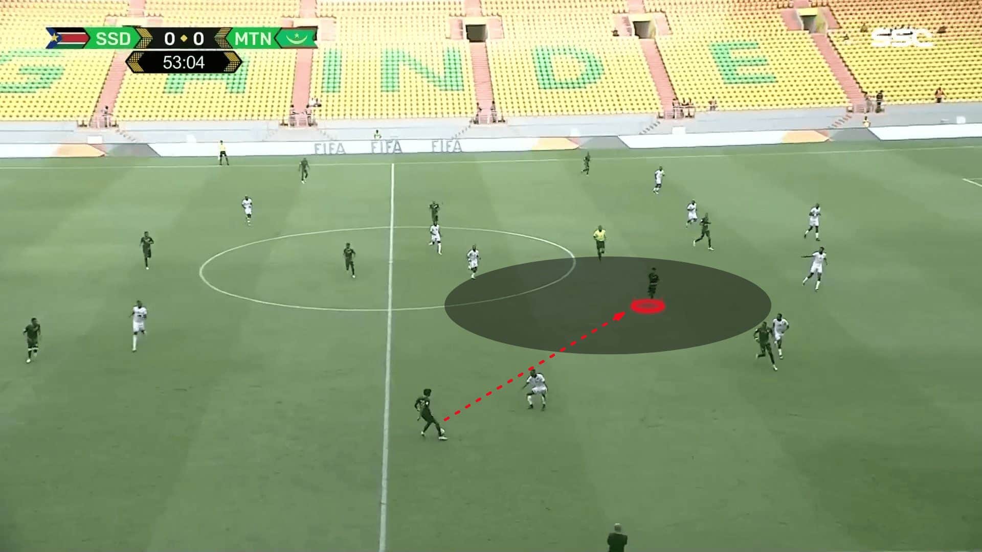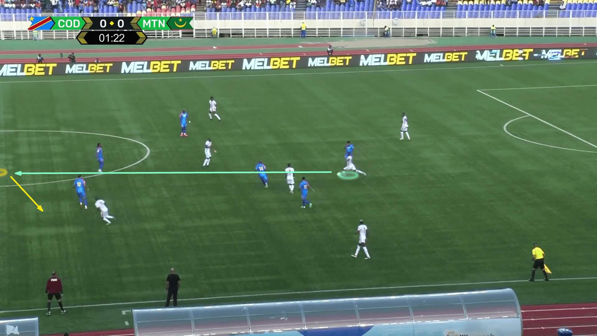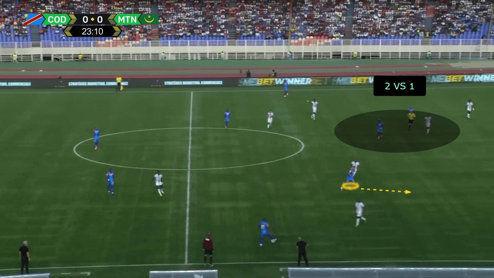 The opponent’s midfielder dragged him widely while the far attacking wing joins number 10 in a 2-v-1 position against the Mauritanian midfielder. The Mauritanian right winger, who should help in the middle, is still far.